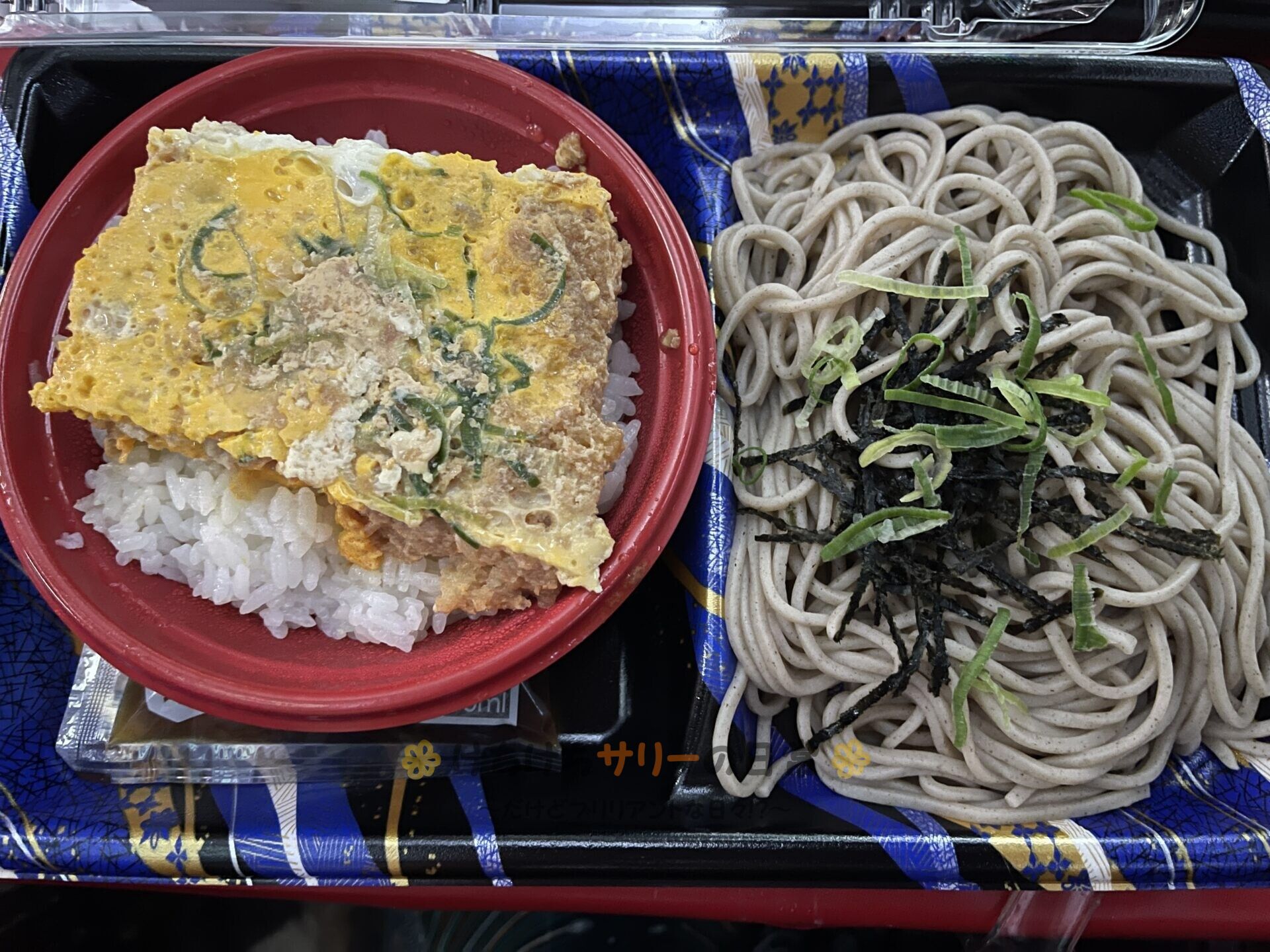「冷やしそばとカツ丼セット:20%引きで396円」はカツ丼は別容器に入ってて温めれるようになってるのが良いね😉