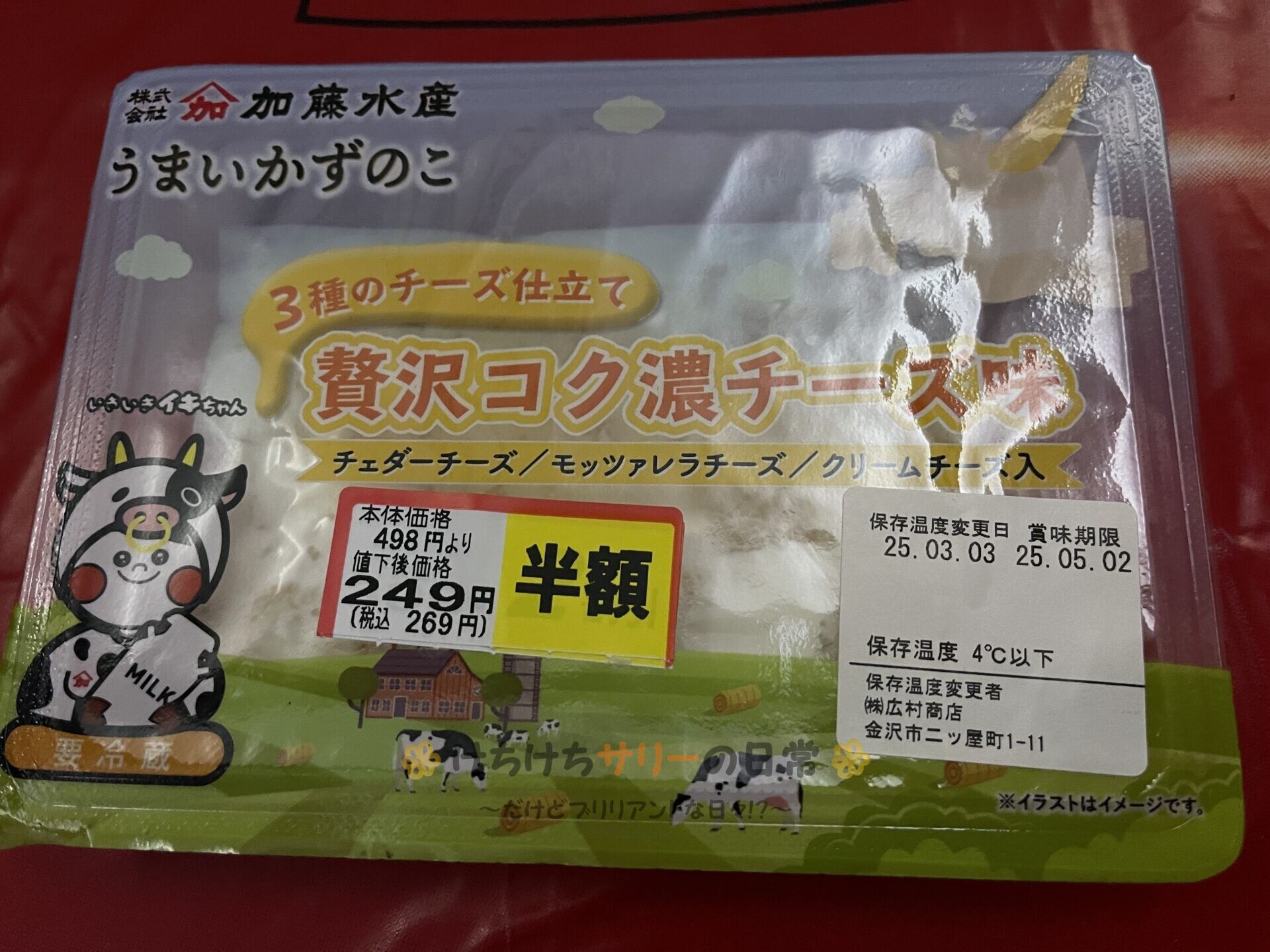 食後は2日目にアルビスでゲットした「かずのこ 贅沢コク濃チーズ味:半額で269円」も楽しんだよ😋 チーズが3種類とも好きなものだったから、あっという間に無くなっちゃった😍
