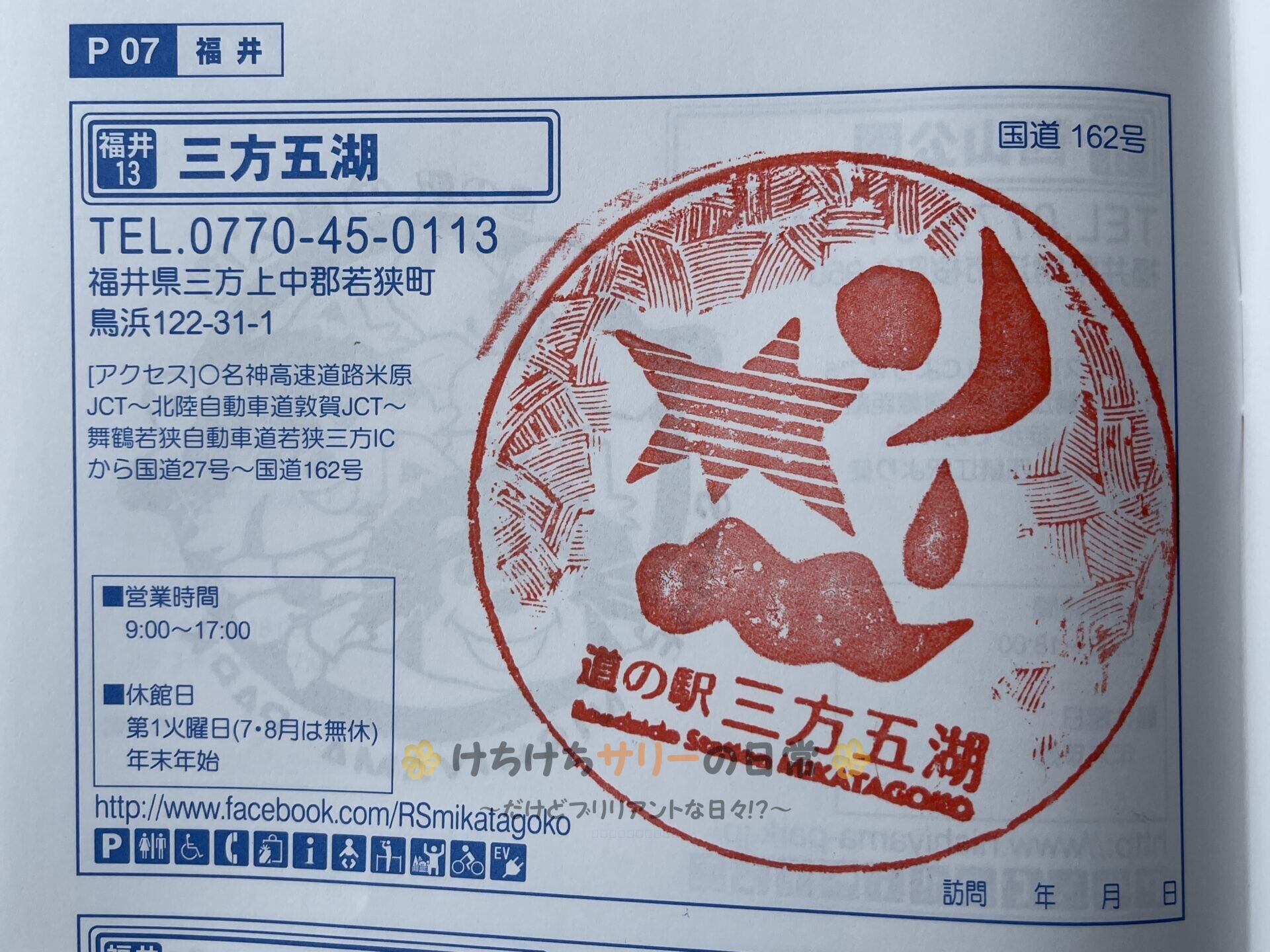久しぶりのスタンプを押印! スタンプは美しいビーチで有名な『水晶浜』とこの辺りの名物『鯖へしこ』のデザインだったよ。