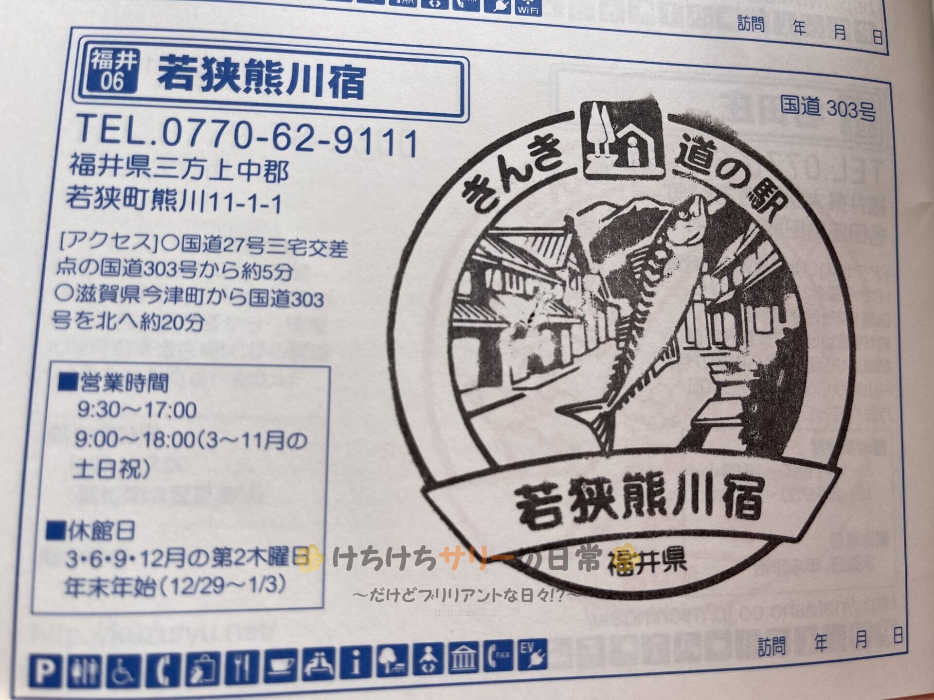 スタンプを押印! 熊川宿は鯖街道と呼ばれる福井県小浜市から京都府まで鯖を運ぶための道の拠点になっていた事もあって、鯖がすごく目立つスタンプだったよ🐟