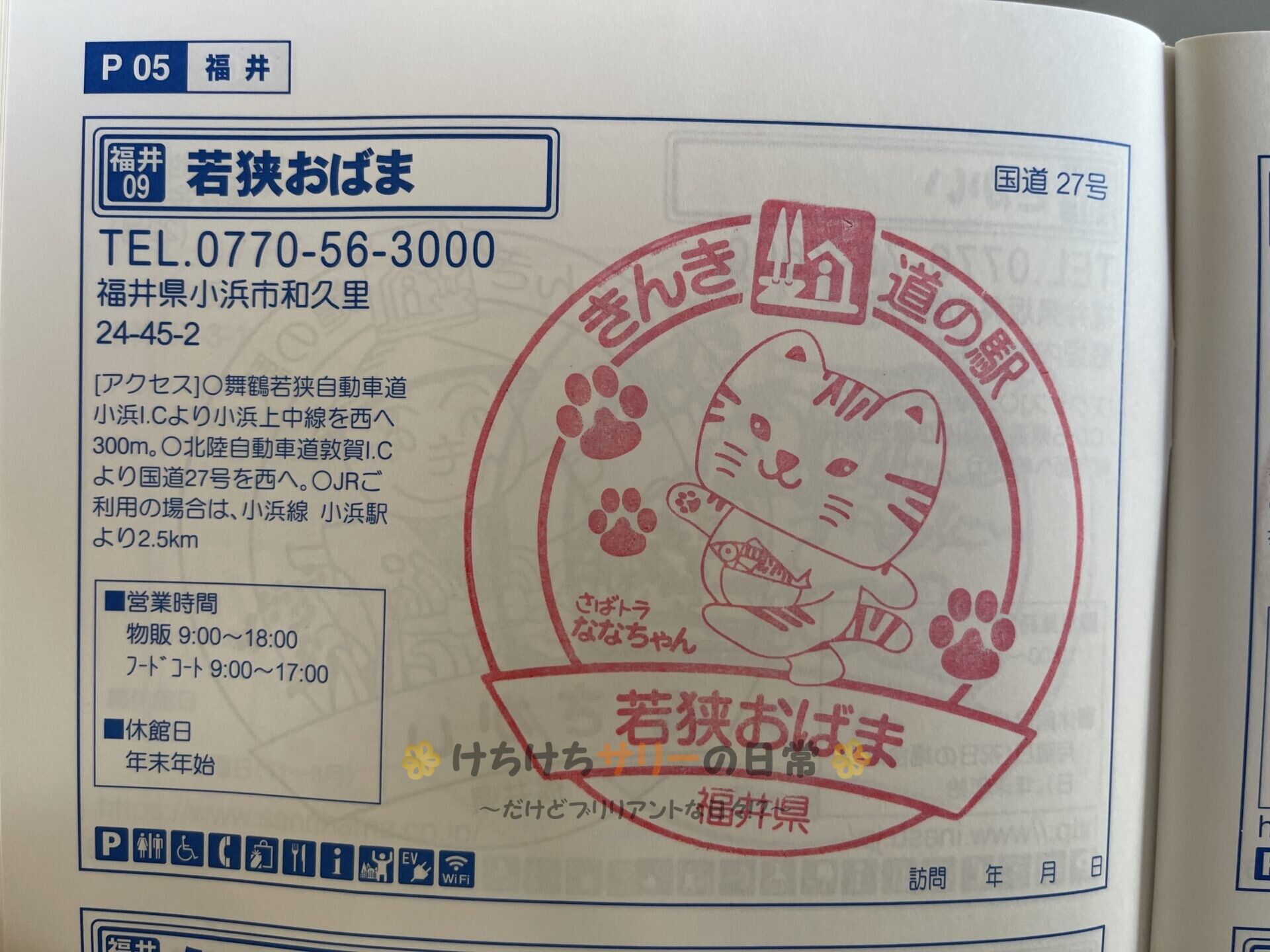 スタンプをゲット👍 スタンプのデザインは小浜商工会議所・街づくり委員会が知名度UPにつなげることを目的に開発した『さばトラのななちゃん』だったよ🐱