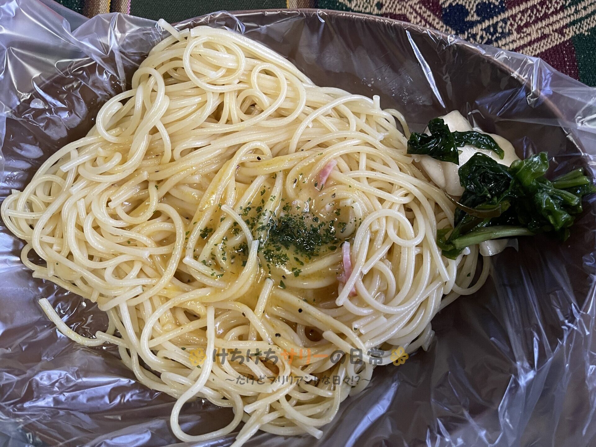 相方は「カルボナーラスパゲッティ」。 もうちょっと具があると嬉しいよね😂