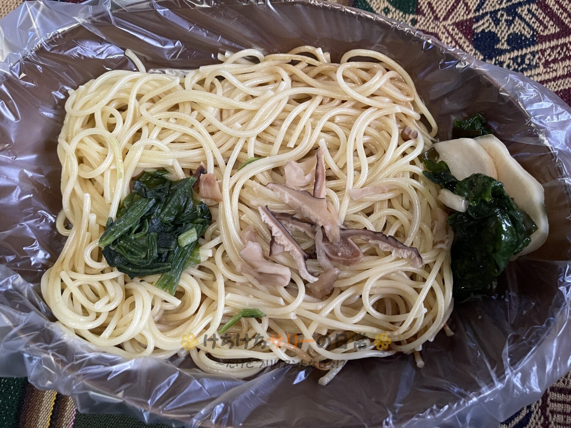 サリーは「きのことほうれん草の和風しょうゆスパゲッティ」を食べたよ。