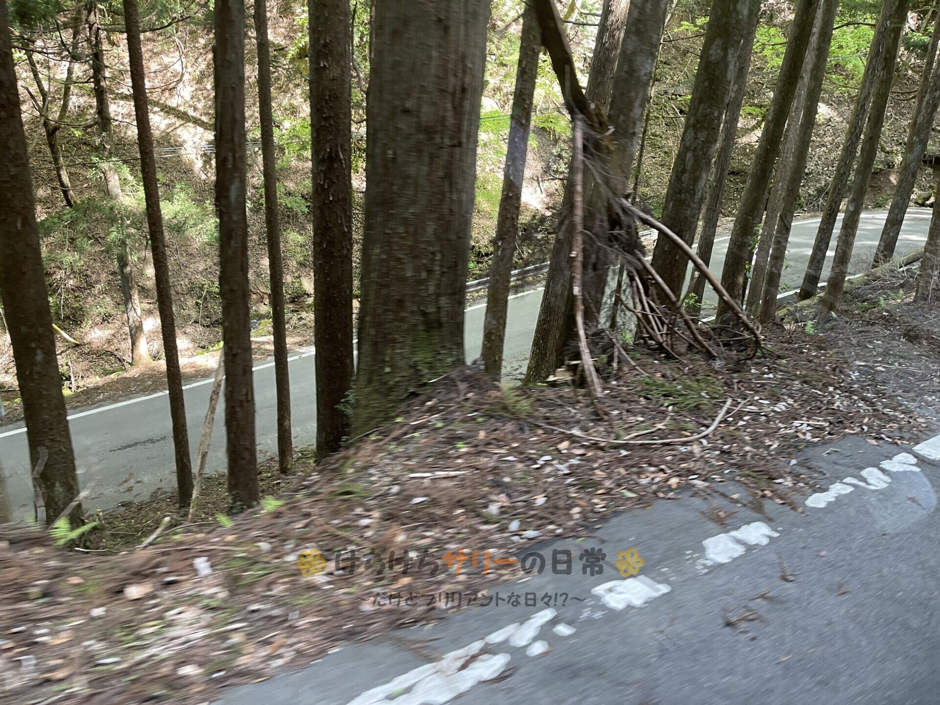 倒木はあるし、ガードレールは無いし、狭い道が結構長い間続く…サリー達は対向車が来ないようにひたすら願う😔