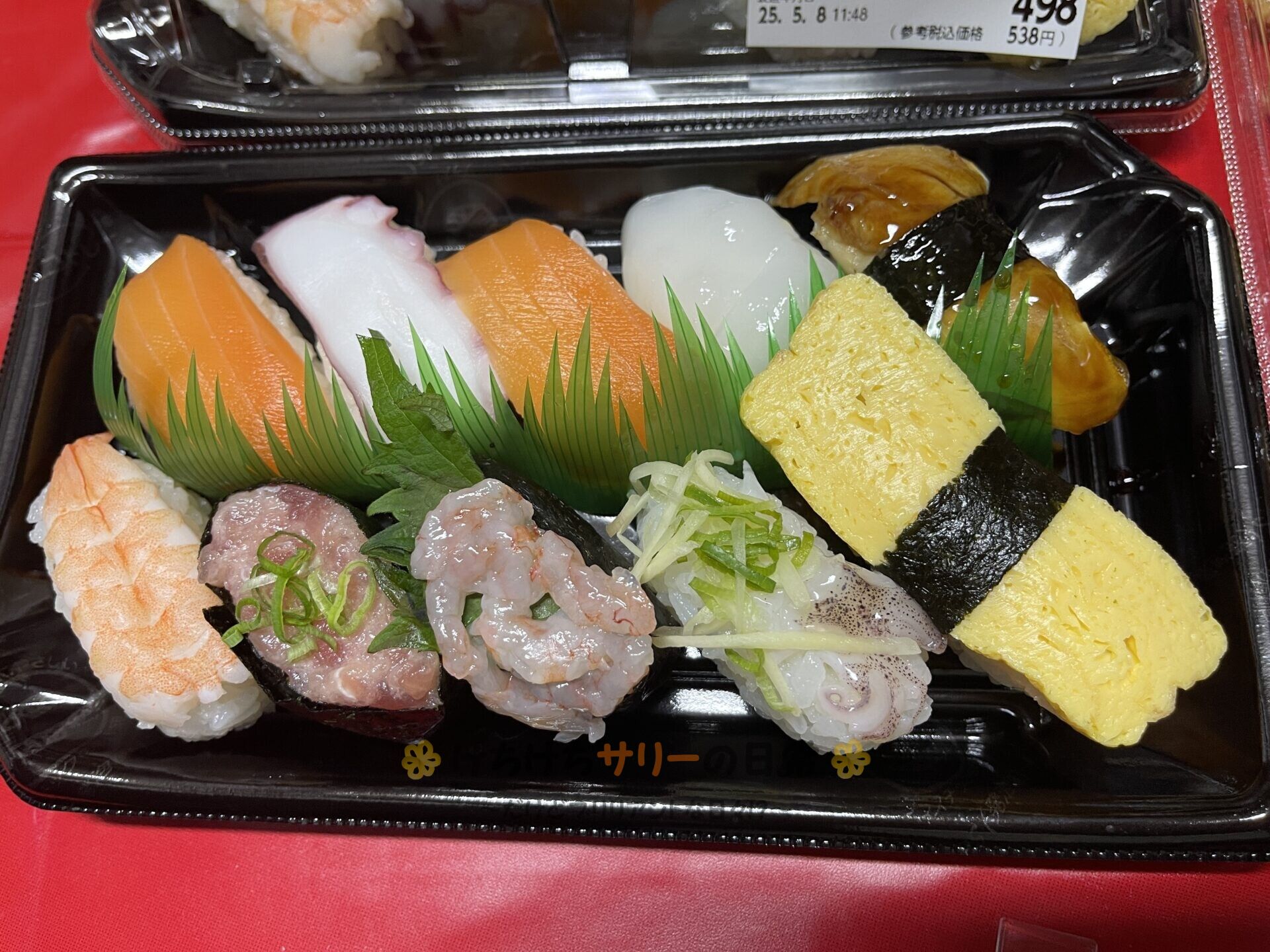 サリーと相方は狙いをつけていた半額になったお寿司を639円で購入して、お買い物タイムは終了。 けちけちは1日にしてならず!