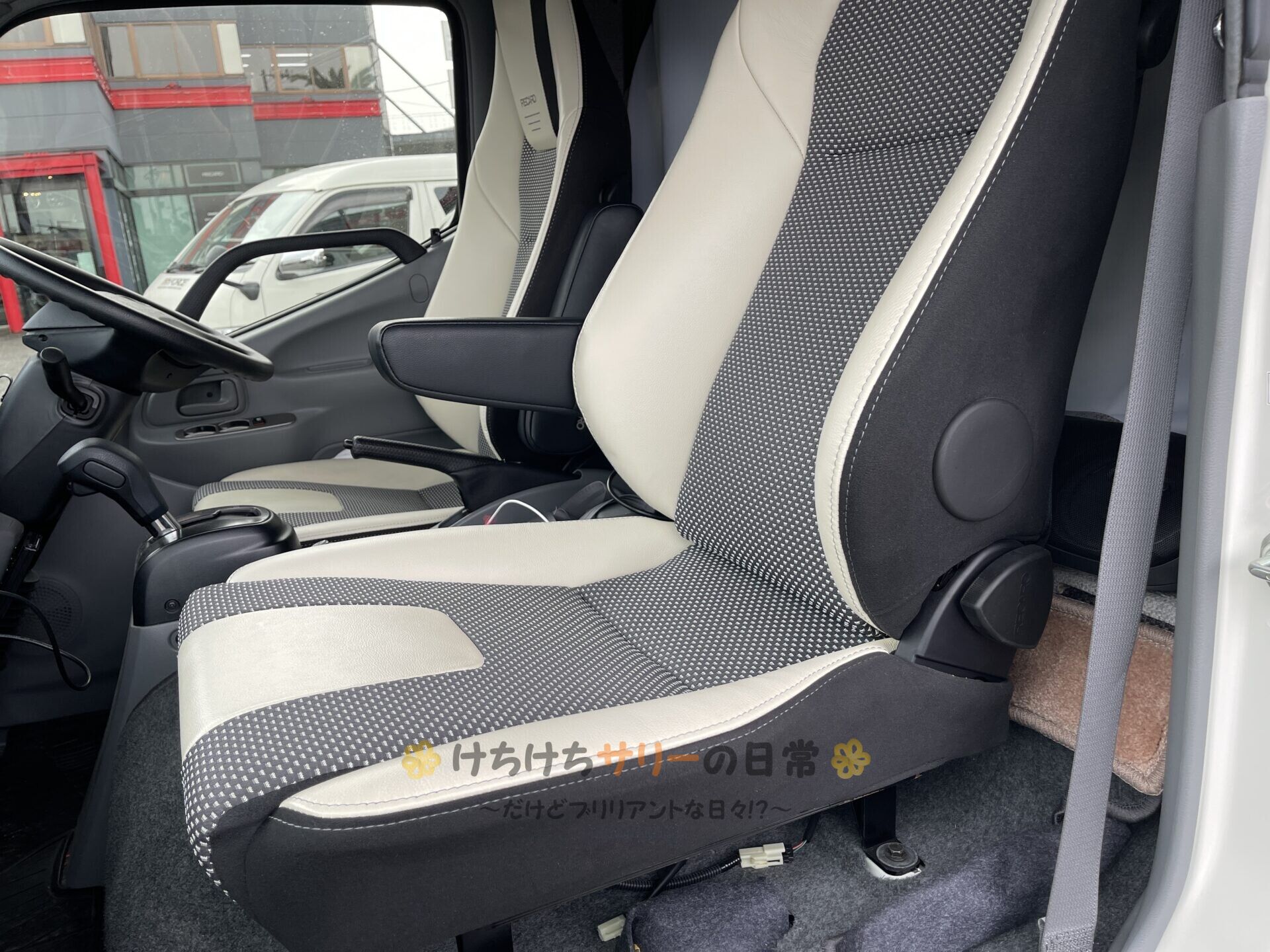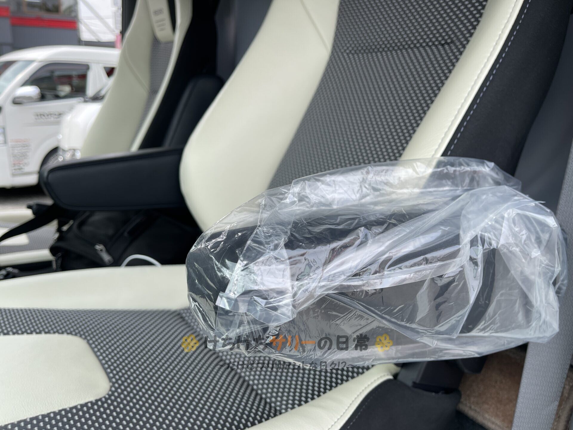 ちょうどお友達がキャンピングカー購入のタイミングでシートを交換したいって話になったから、ここのお店を紹介した縁で特別に割引価格で購入できることになったの✨ お金は先に振り込み済でお店に商品を取り置きしてもらってたから、今から付けてもらうよ~!!