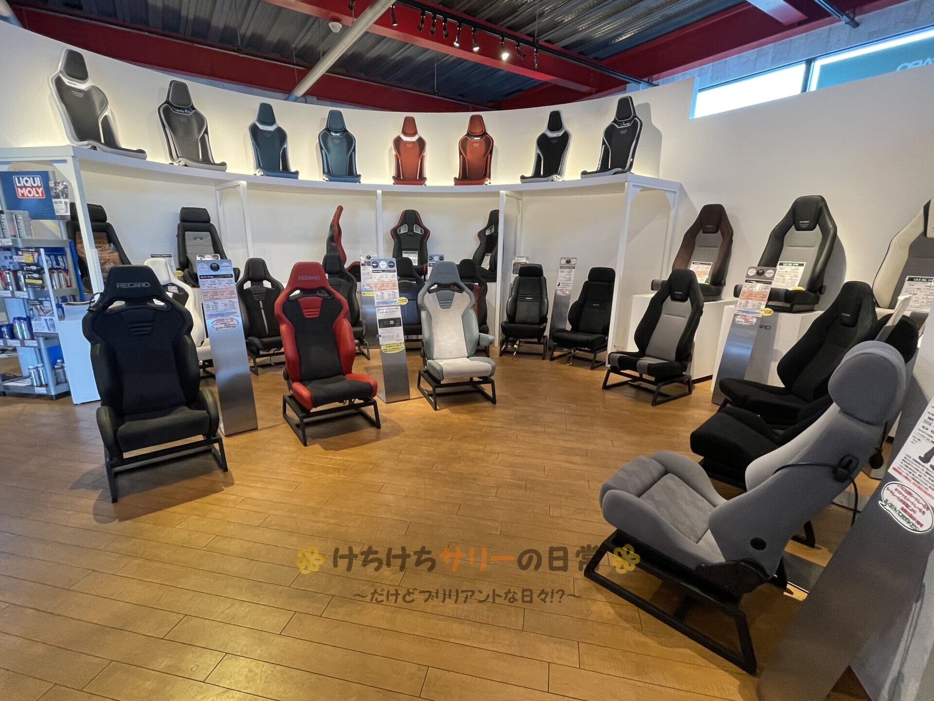 取り付けしてもらう間は店内で待つ。 いつ来てもRECAROシートが並んでいる光景は良いね😁