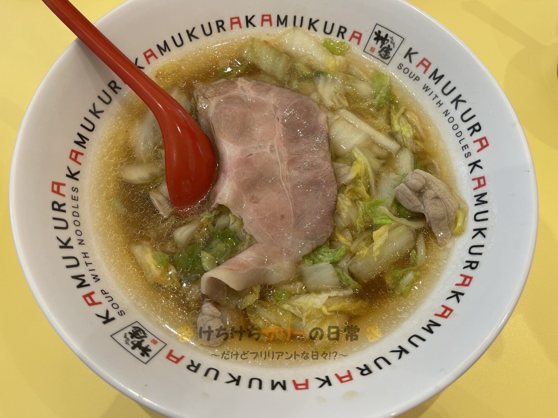 本日の主役の「おいしいラーメン:750円」×2つ。 白菜がたっぷり入っていて、白菜の甘味と豚バラの旨味がとけた唯一無二のスープで美味しかったよぉ😋