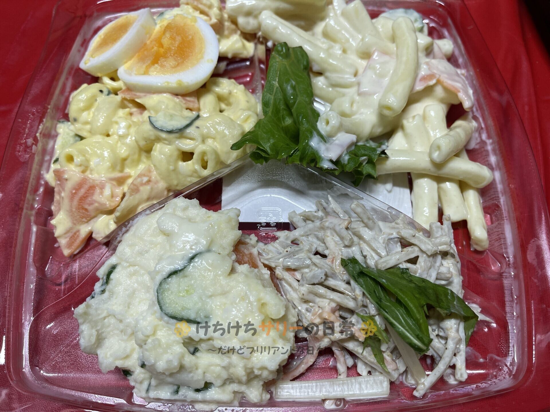 更に「人気4種のアソートサラダ:半額で215円」と…