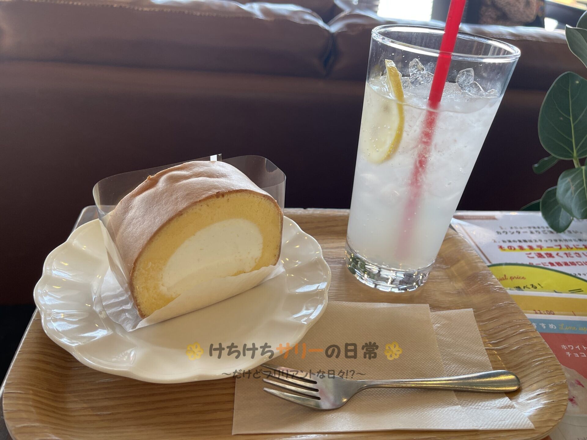サリーは「川珈琲店の夢ロール:396円」+「レモンジンジャーソーダ:462円」を注文。 セット割で110円引きになったから、写真のセットで834円だよ。