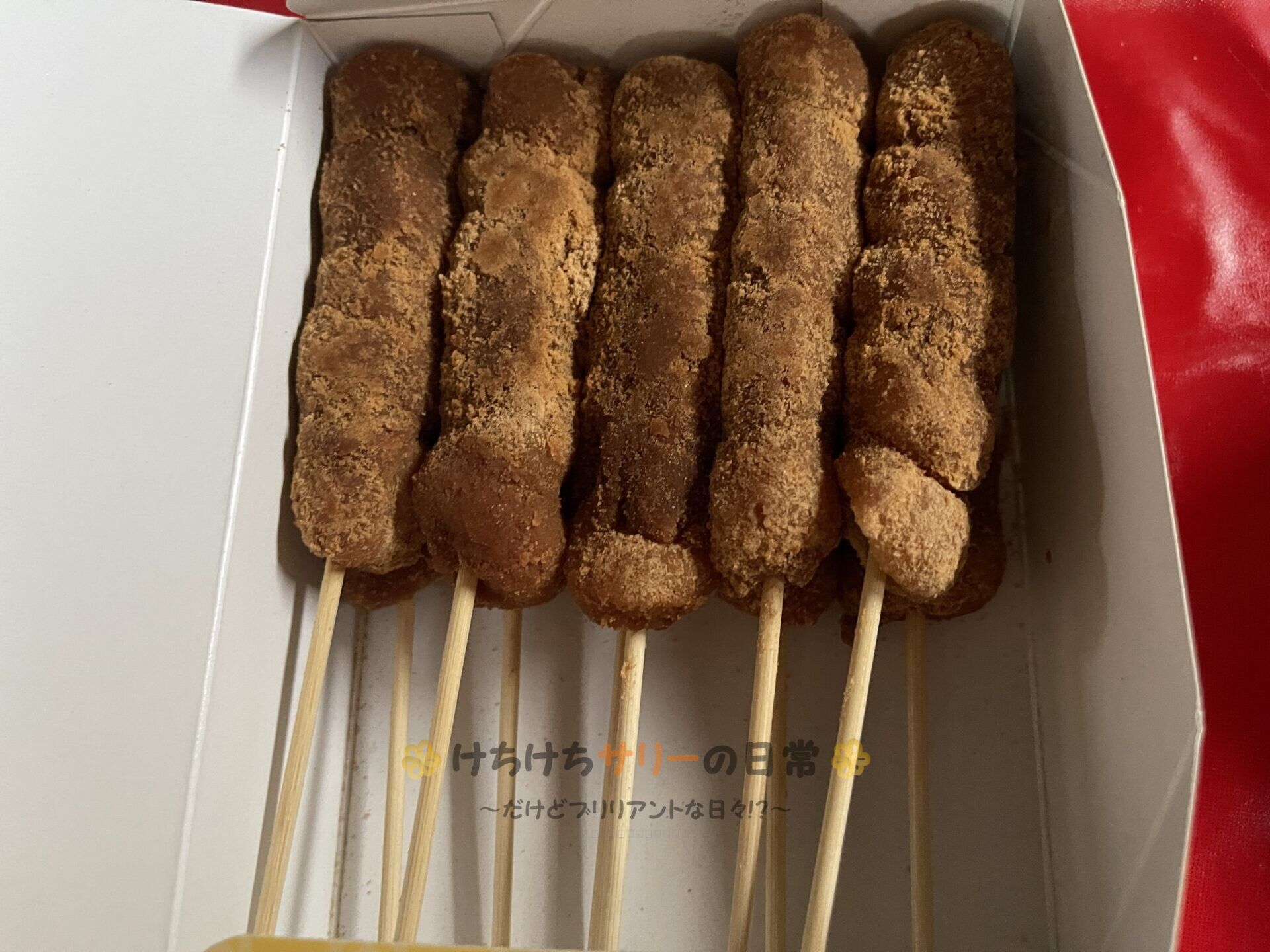 箱を開けたら、美味しそうなきなこのお団子😍 すごく柔らかくて美味しかったよぉ~🤤