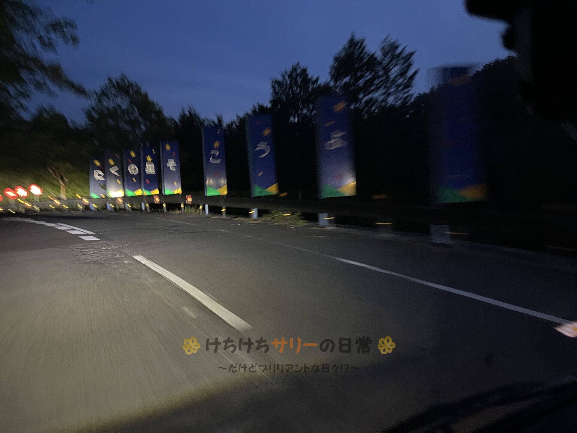 「ようこそ星のくに」という看板が綺麗な星空を期待させてくれる🌃