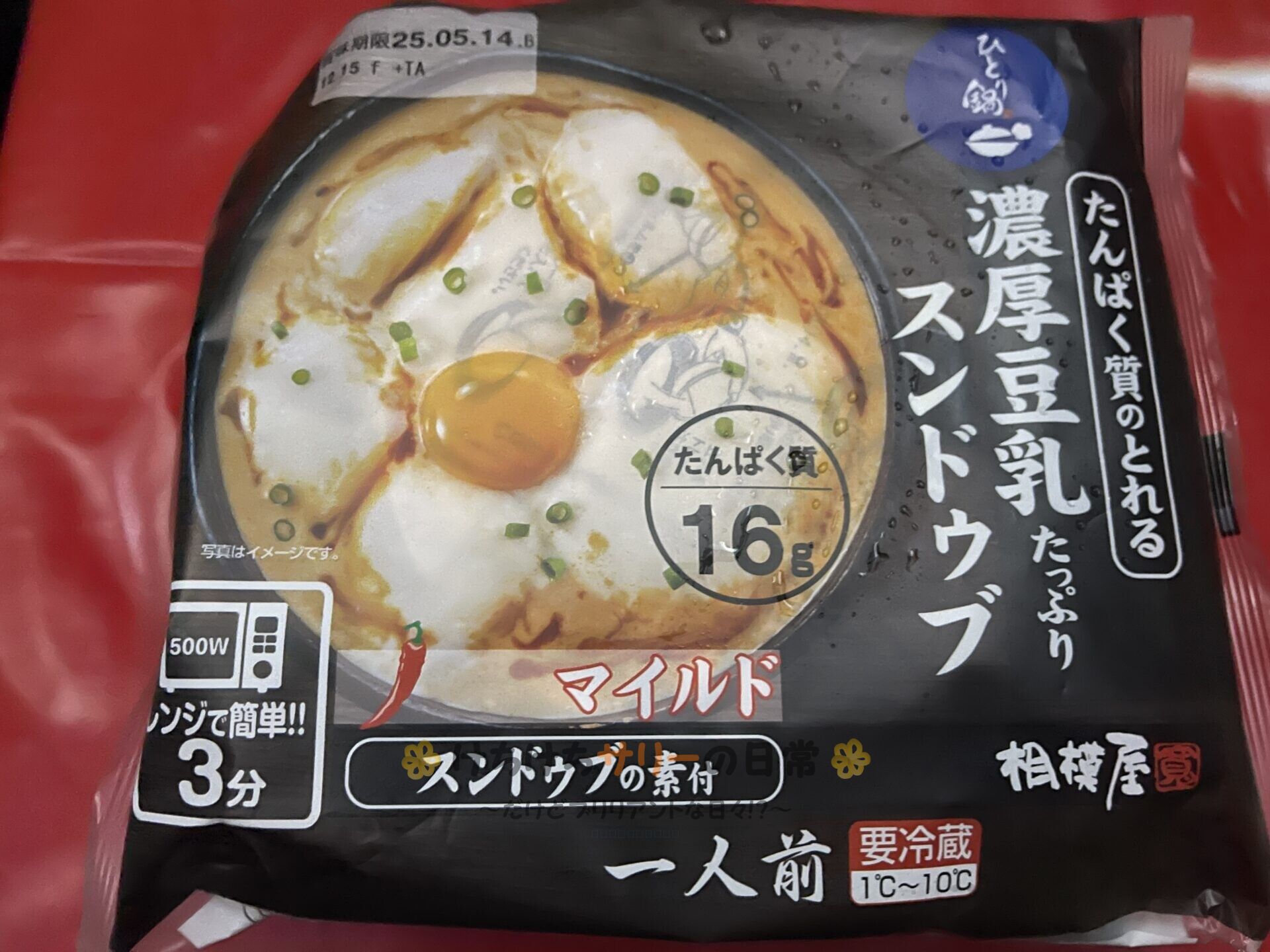 この日の夕ご飯は「濃厚豆乳たっぷりスンドゥブ」。これ、豆腐が入っててレンジでチンするだけだから簡単で美味しいんだよね😊