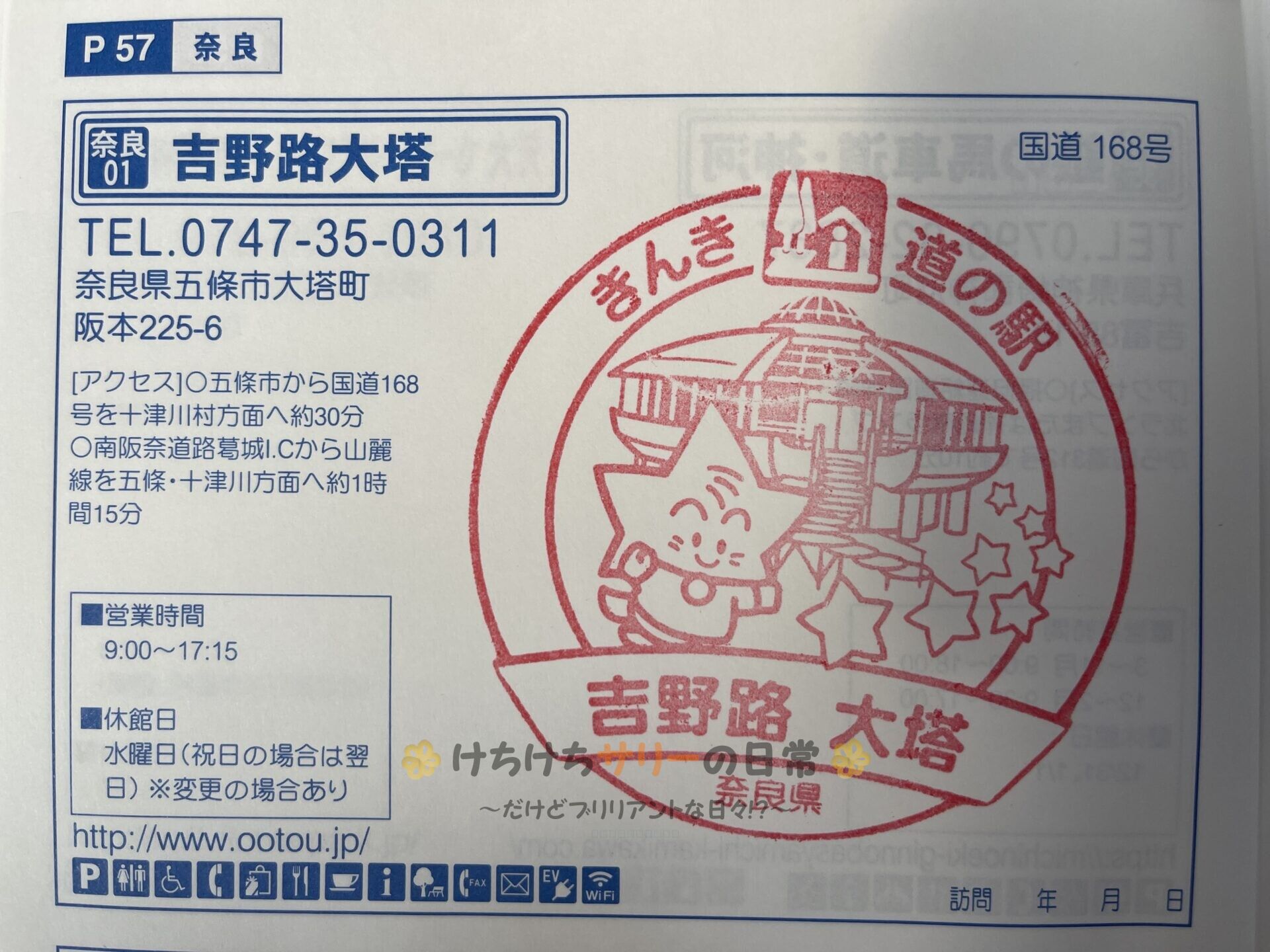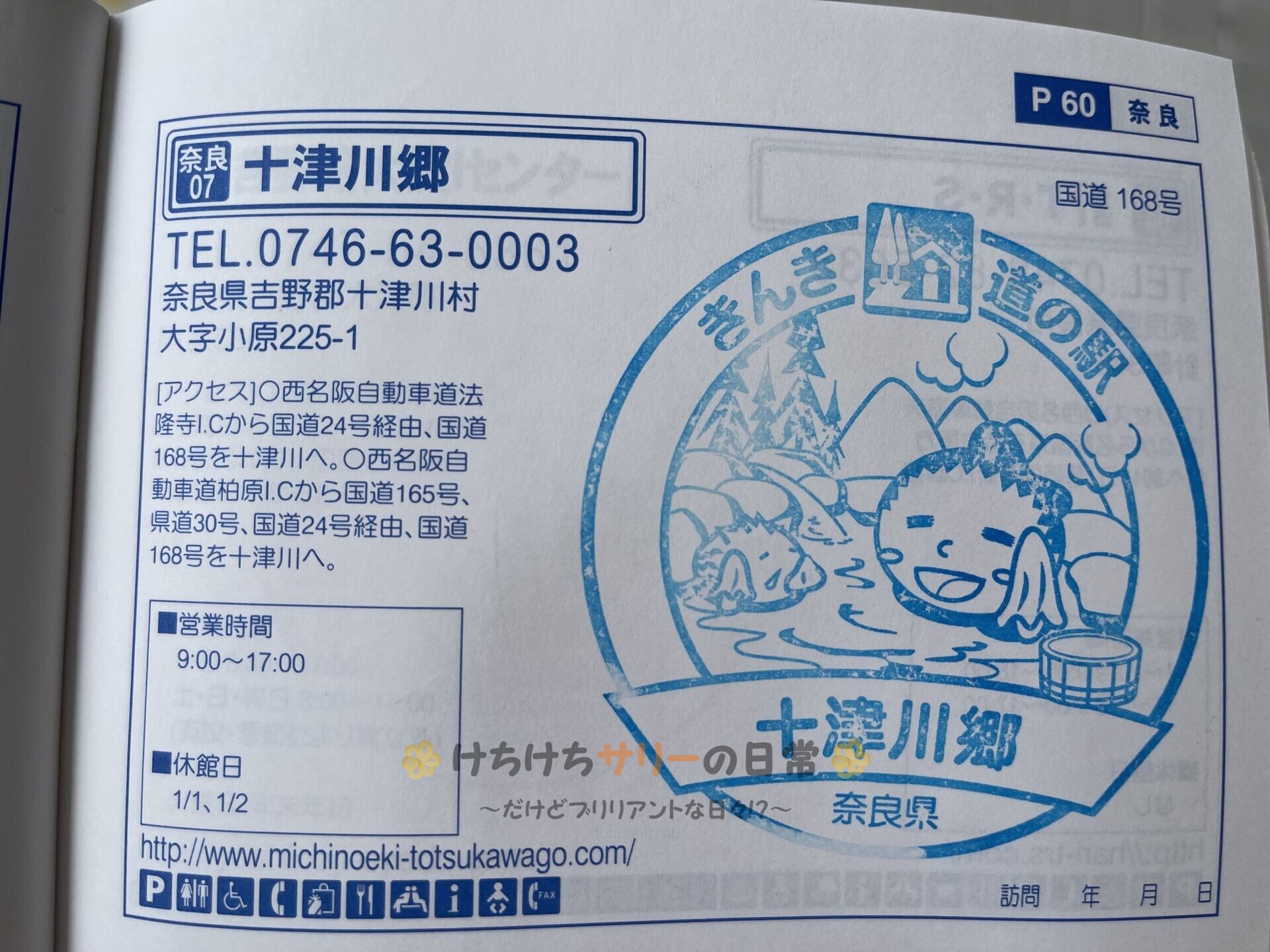 スタンプをゲット👍 この道の駅がある十津川村は村内全域が厳選かけ流しという羨ましい村。 全国で初めて『源泉かけ流し宣言』をした村で、村の温泉施設すべてが循環や再利用を一切しない、沸かさない、塩素消毒をしないっていう"ほんまもんの温泉"を楽しむことができる全国でも数少ない温泉なんだって。