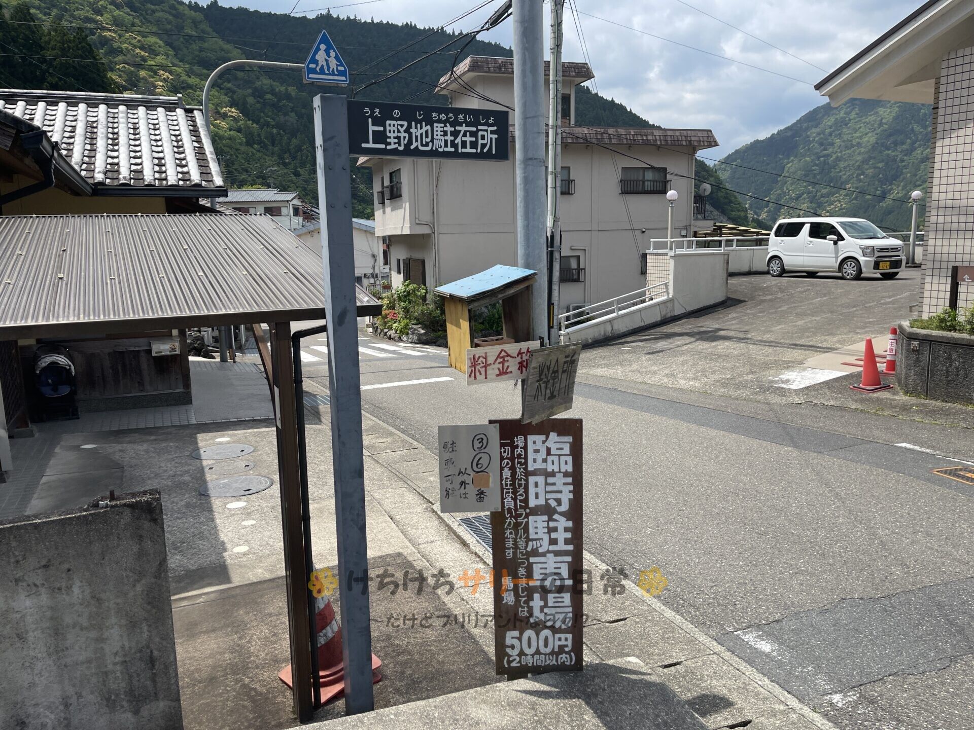 まずは観光する為にマイペンライ号を駐車場に停めるよ。 この辺りは有料の駐車場しか無くて、駐車料金は1回500円。