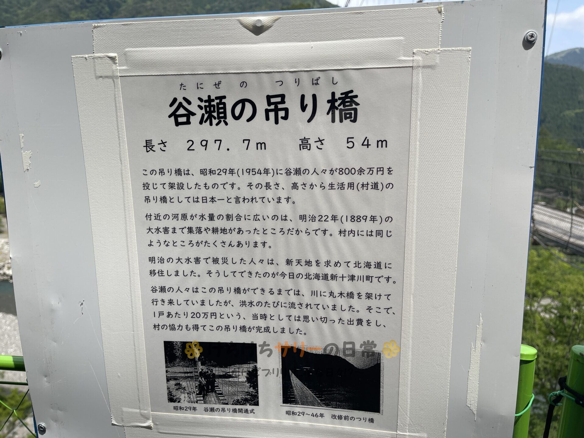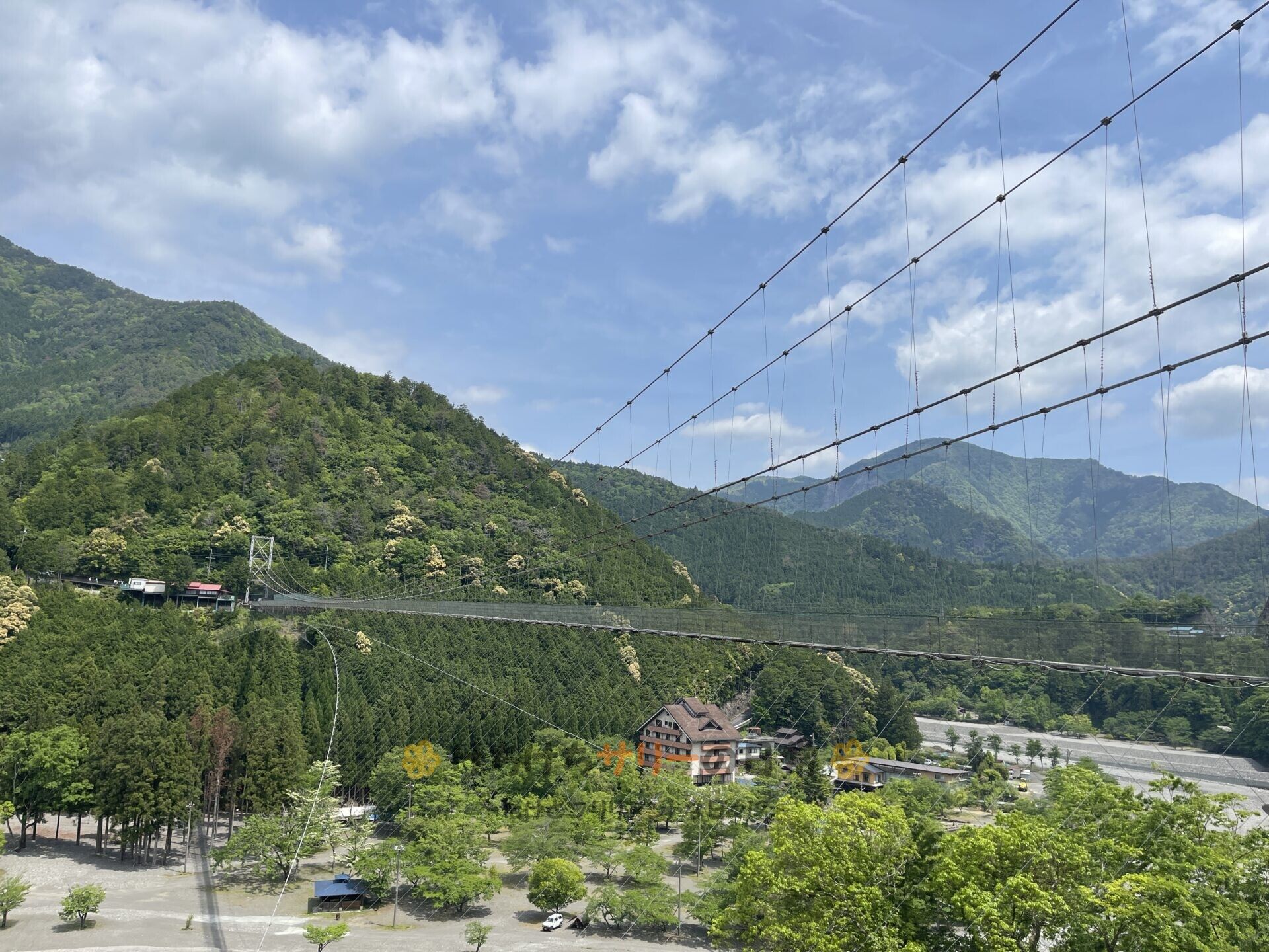この吊り橋は日本有数の長さを誇る鉄線の吊り橋で、長さが297m、高さは54mもあるんだって😮