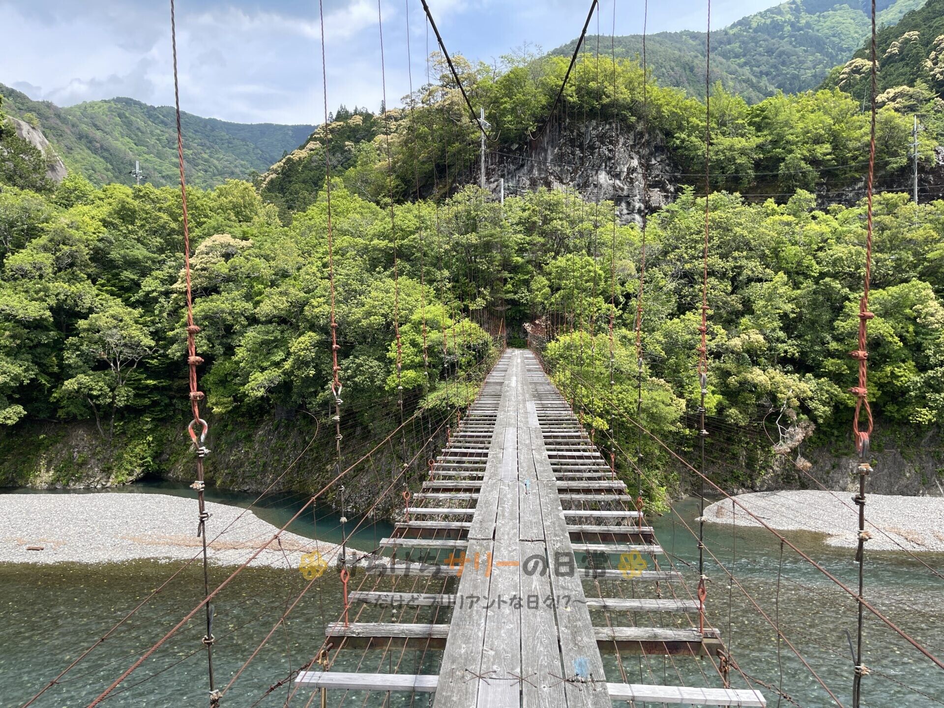 吊り橋はところどころ、人とすれ違う為の足場が設けられてるんだけど、人が歩くとかなり揺れるから高所恐怖症の人は無理かも😛