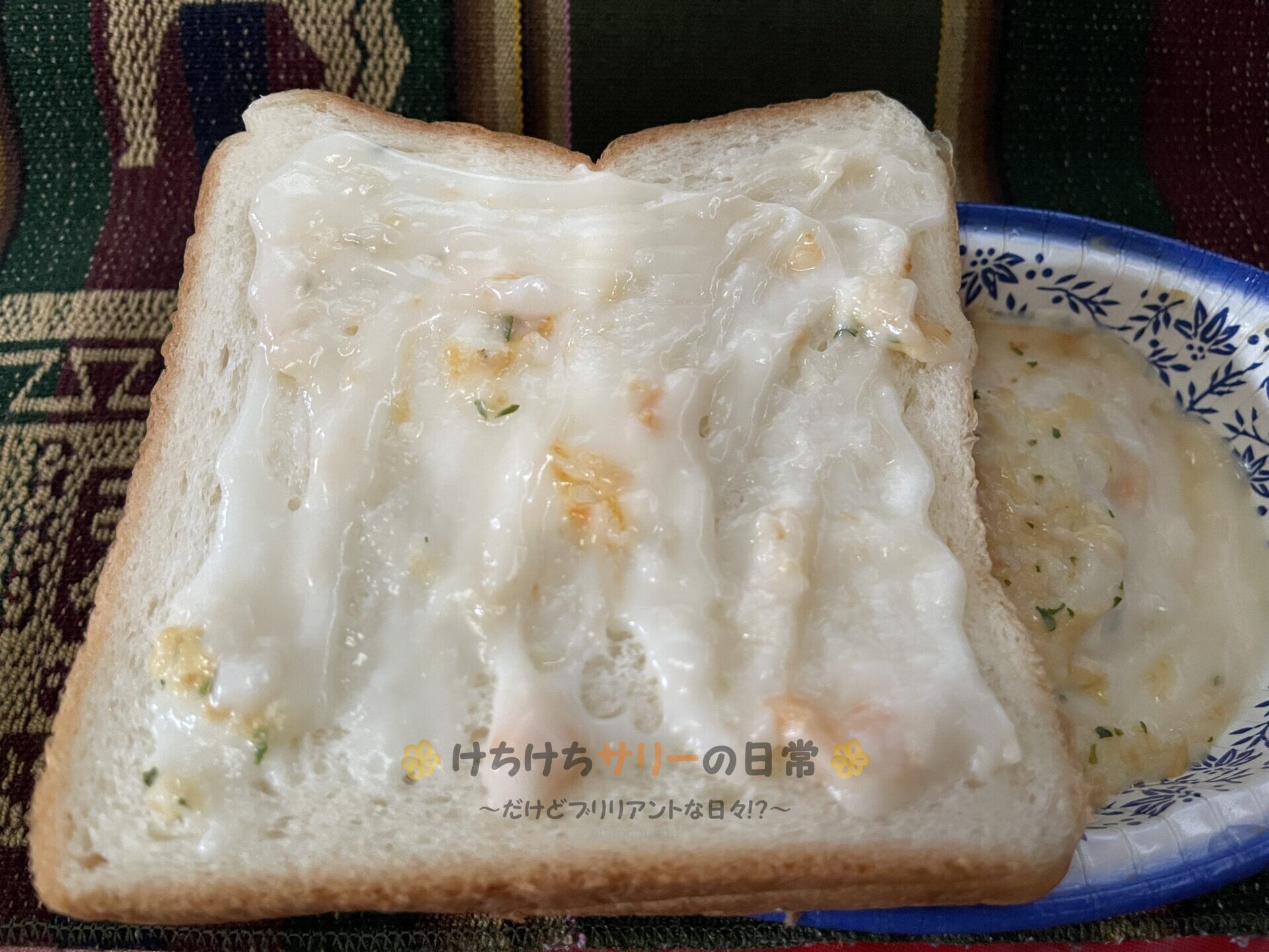 ドリアだけだと小ぶりなので、お友達からもらった高級食パンにホワイトソースを塗って食べたよ! 良いアイデアでしょ😁