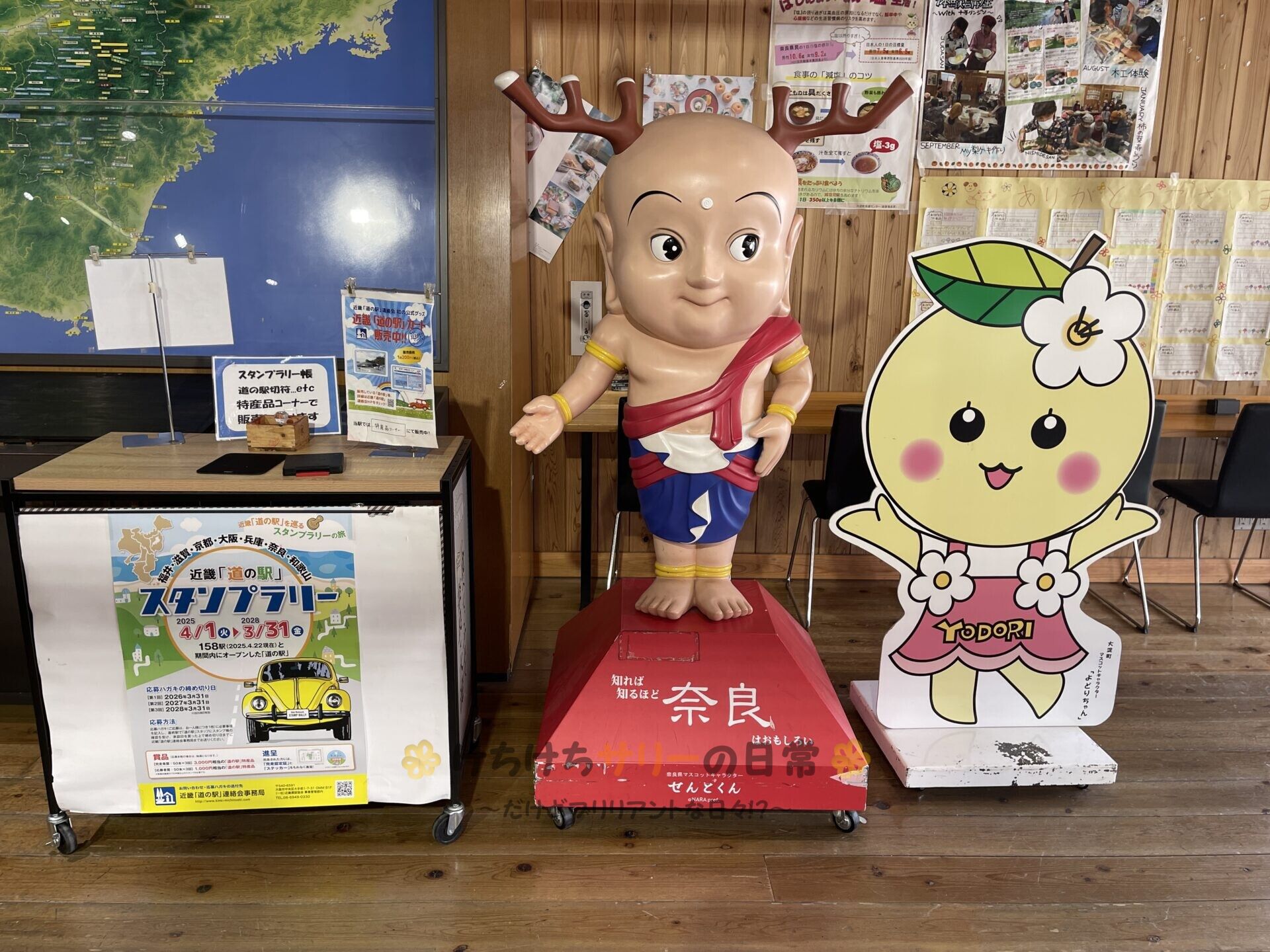 奈良県に来たらあちこちに『せんとくん』がいるね😁 『せんとくん』の隣にいるのは大淀町のマスコットキャラクター『よどりちゃん』。年齢は秘密だって(笑)