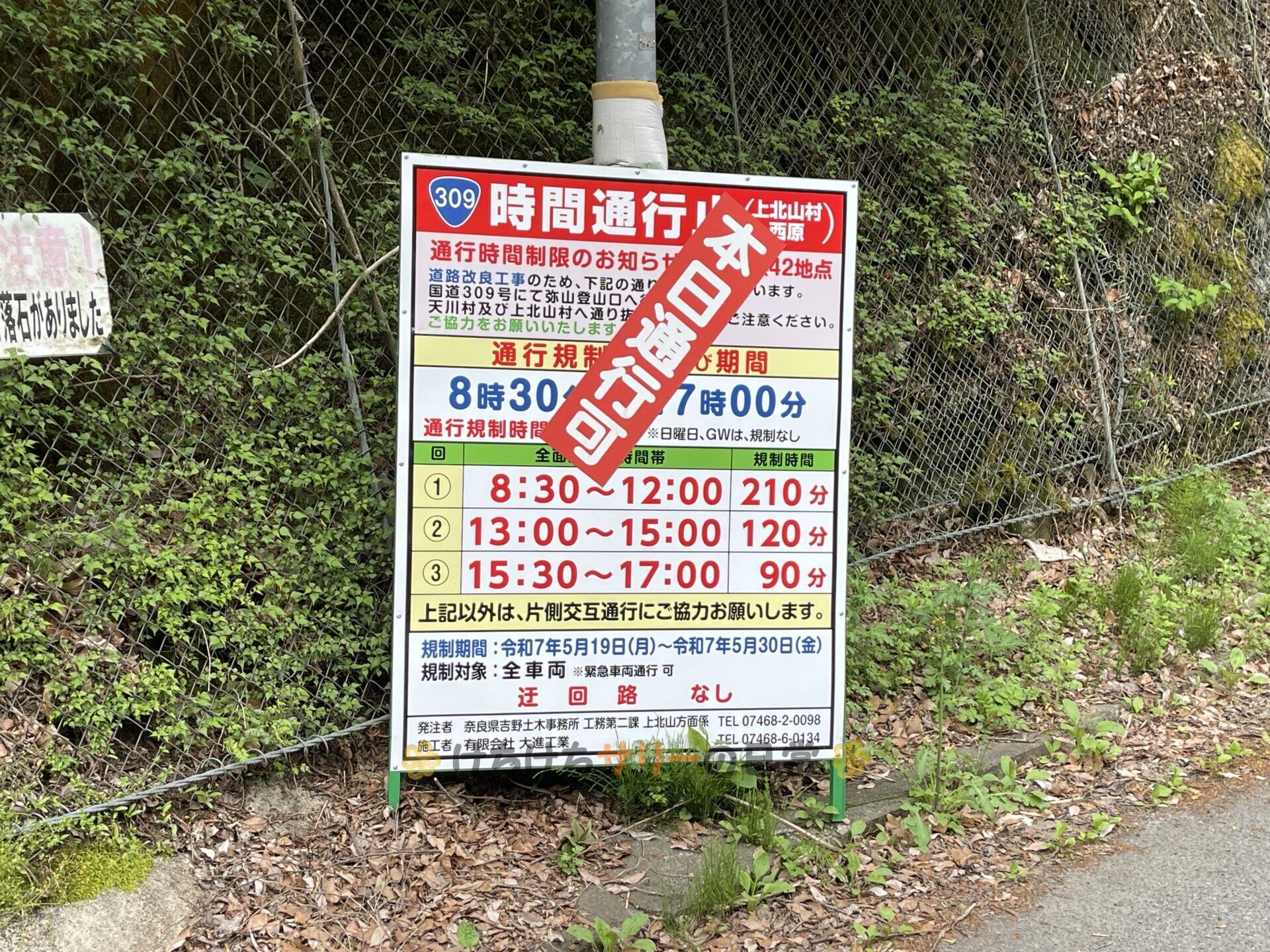 その後も時間通行止めの看板があったりしてヒヤヒヤしたけど、幸いにも『本日通行可』との事。
