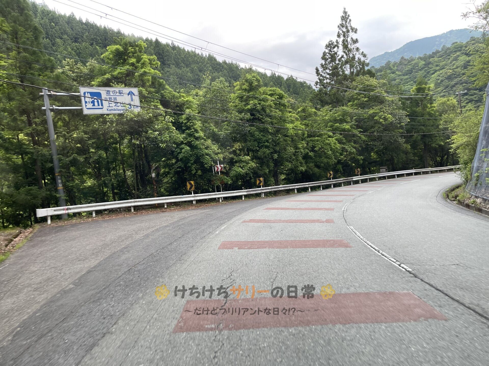 奈良県の道の駅スタンプを制覇するために南へ向かうサリーと相方。大自然の中にかかる大きな吊り橋を楽しんだ後に待っていたのは、大きなマイペンライ号で通るにはかなり厳しい曲がりくねった細すぎる国道😵‍💫 終わりがないかと思いながらも山道を突き進んでやっとの事で目的地の道の駅に着いたよ😅