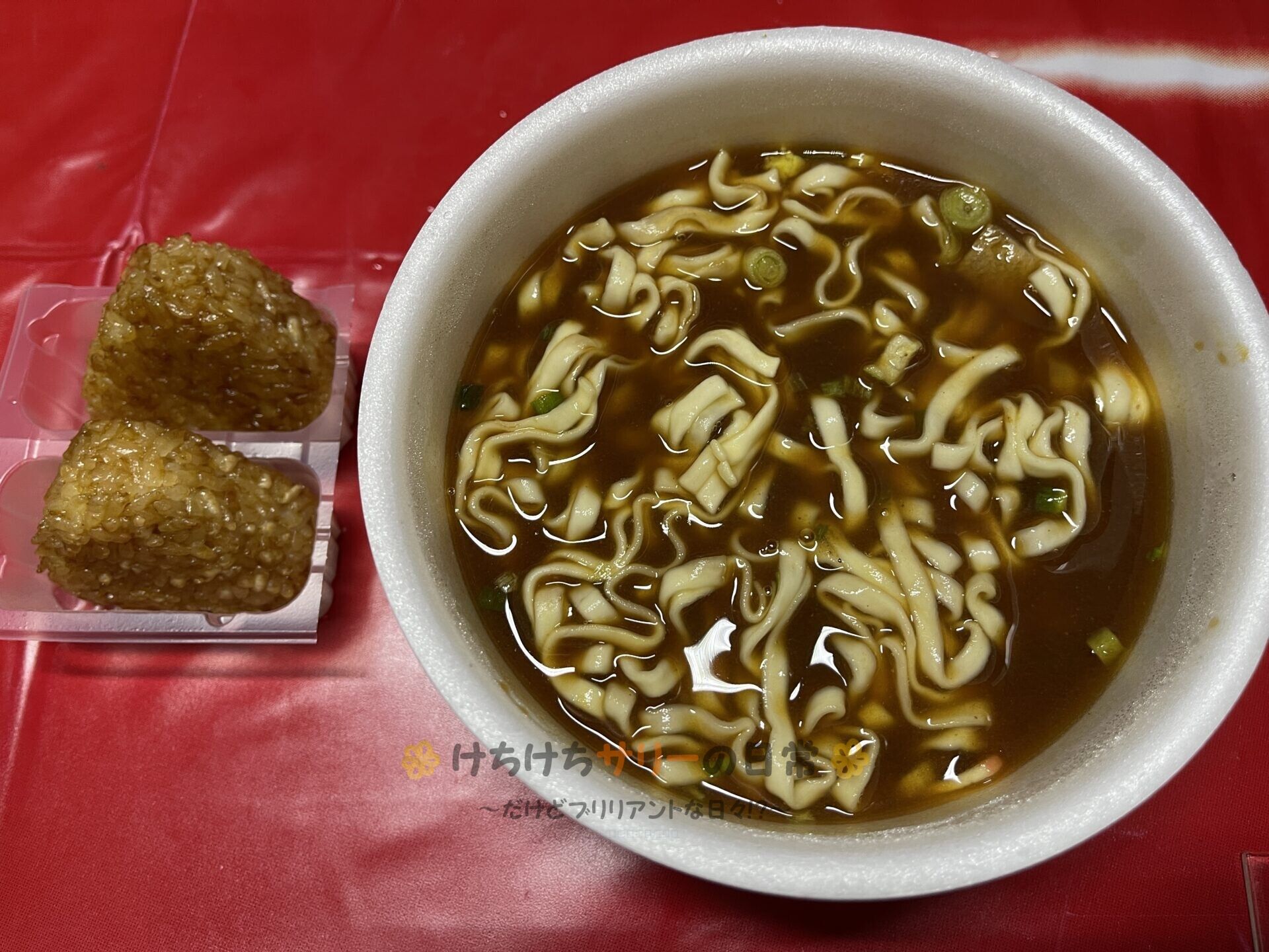 この日の夕ご飯は寿がきや「名古屋名物みそ煮込みうどん」と冷凍の「焼きおにぎり」。