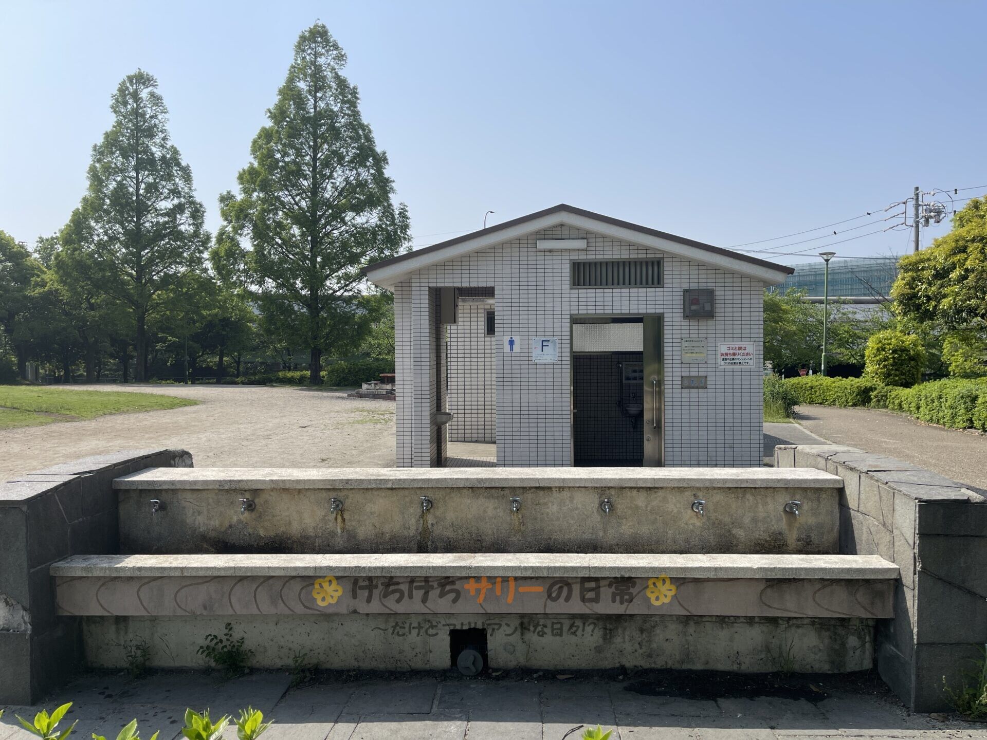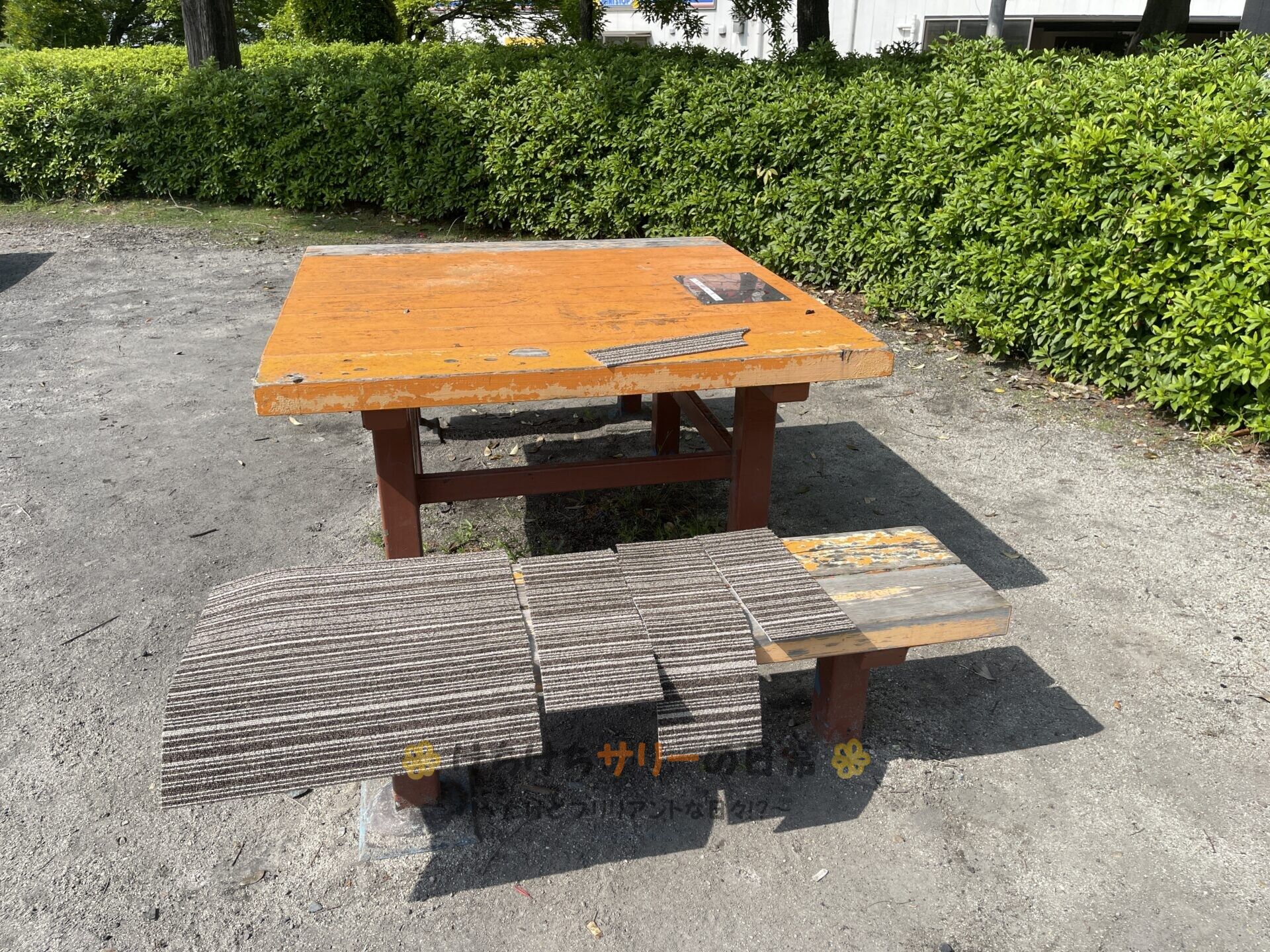 お昼ご飯を食べた後は炊事場がある荒子川公園に移動して、タイルカーペットを本格的に洗うよ🧽