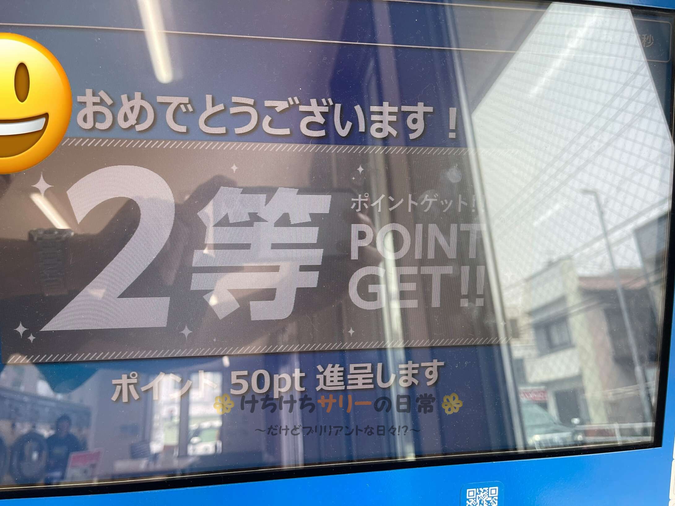 いつも行くコインランドリーのショップカードに入金をしたら、3等の5ポイントしか当たらない事が多いのにこの日は2等で50ポイントをゲットしたよ😁 やったね!!