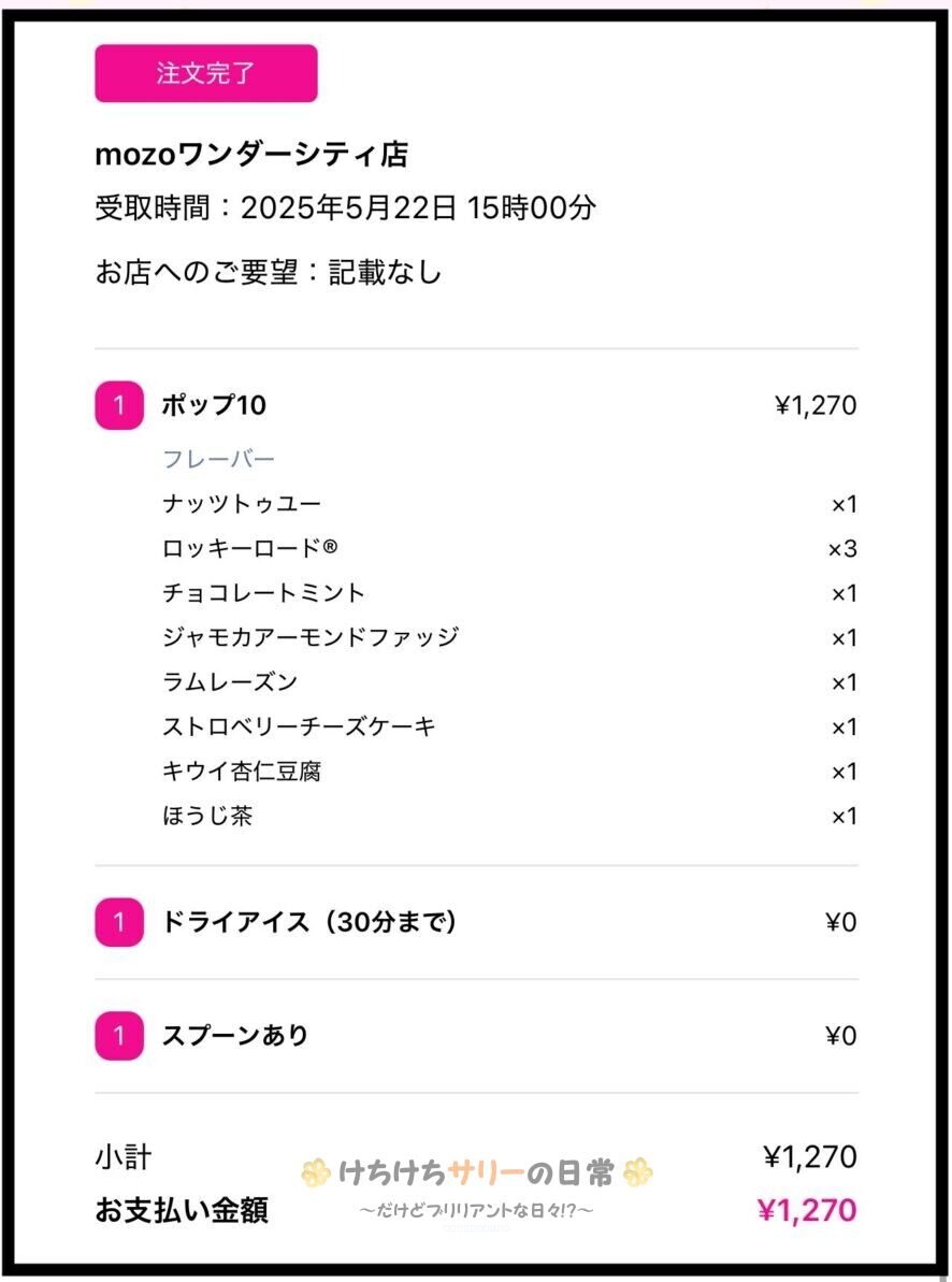 フェスではアイスクリーム7個~10個まで選べるんだけど、サリーが選んだのはもちろん「ポップ10:1,270円」以外、選択肢無し!