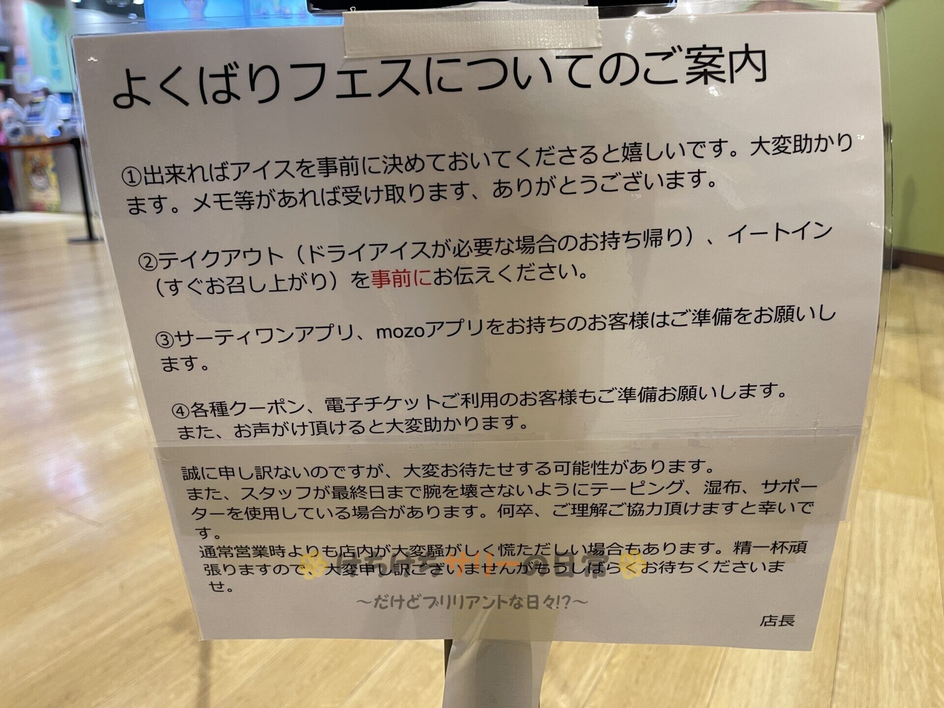 土日はめちゃくちゃ並ぶからか、よくばりフェスについてのご案内もあった👇