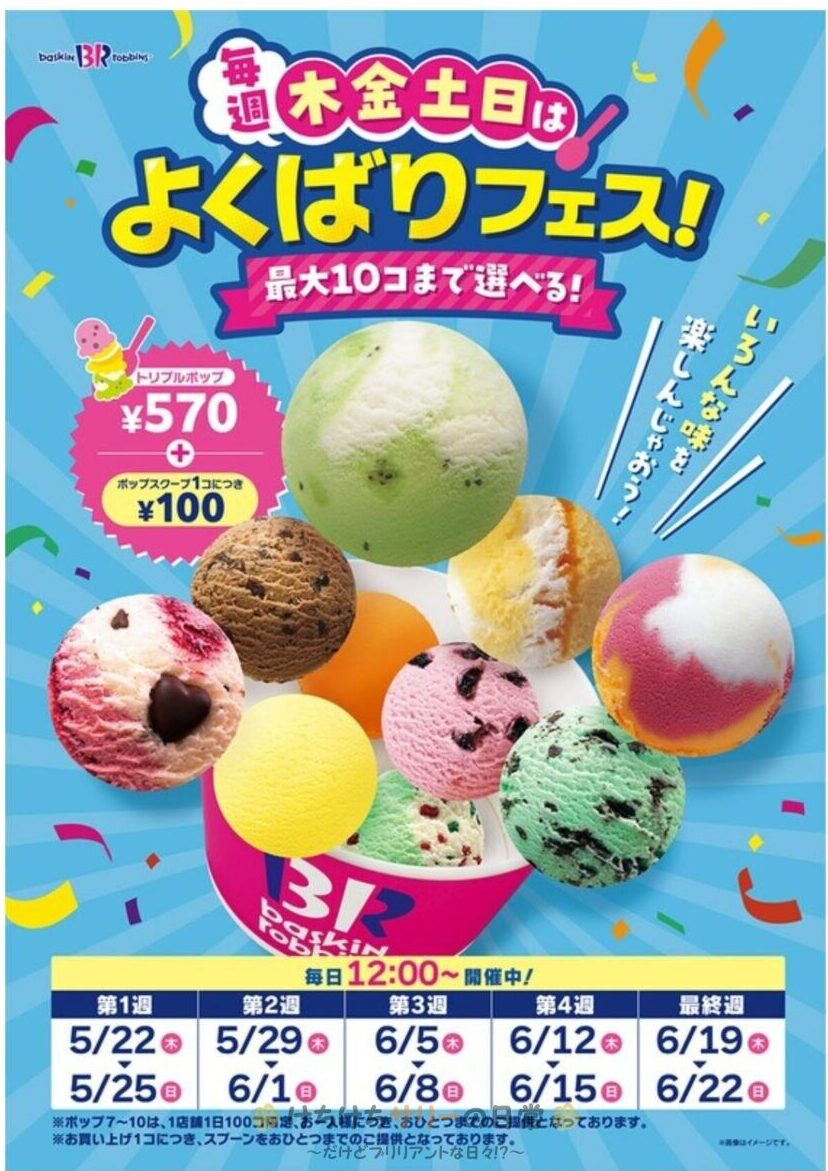 サーティーワンでは毎年この期間の木金土日だけ『よくばりフェス!』というイベントをやっている😁