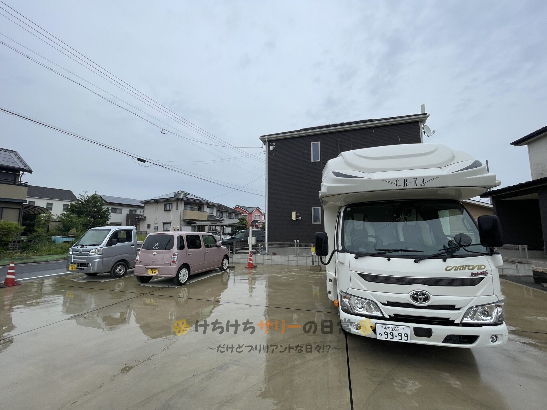 「実家RVパーク」で目を覚ましたサリー達😊 天気はあいにくの雨☔