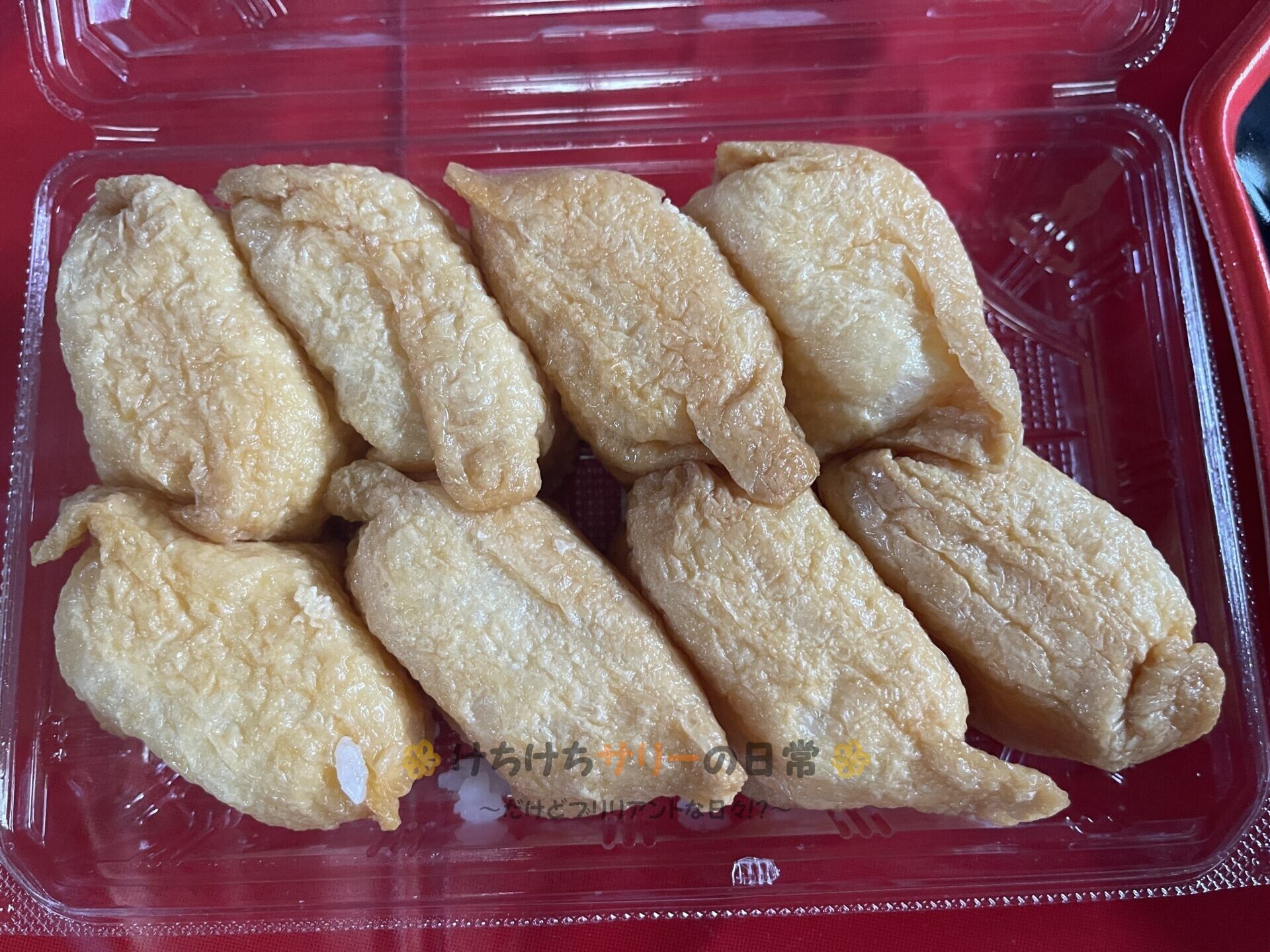 アルビスで買っておいた「いなり寿司:5割引きで199円」だよ。