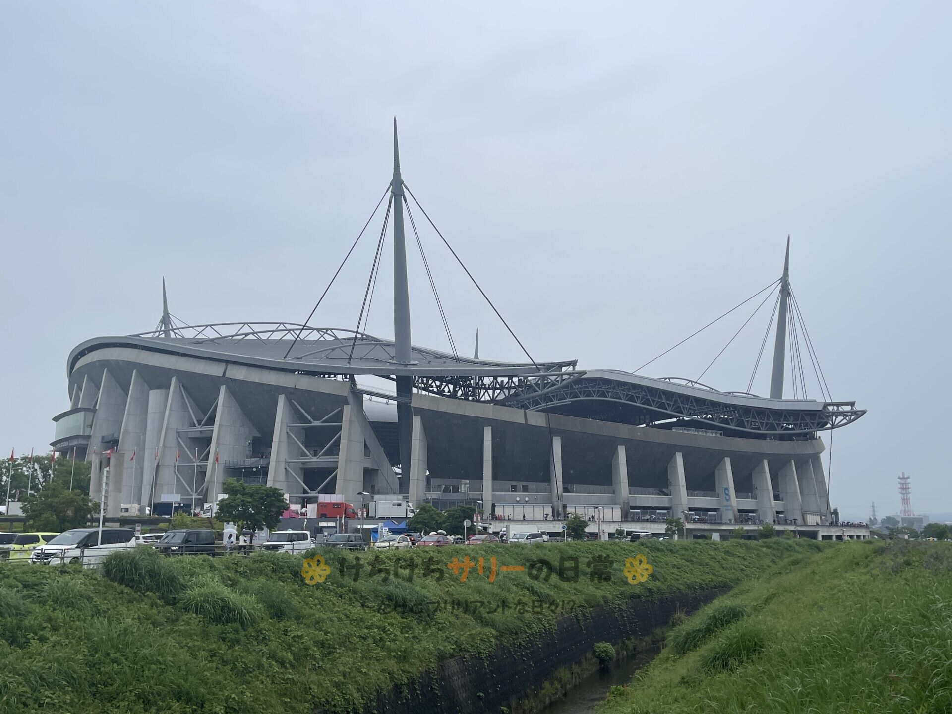 駐車場から20分ぐらい歩いて「豊田スタジアム」に到着。