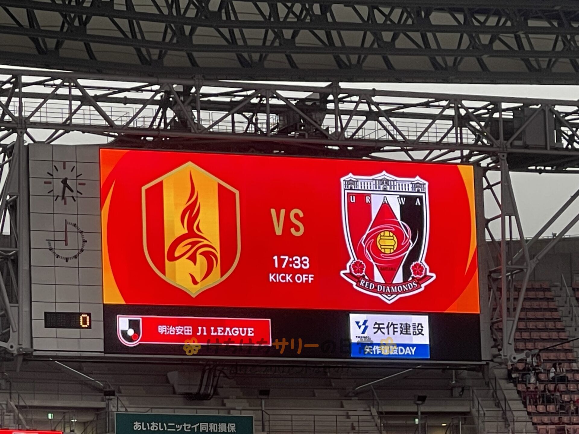 この日は選手達が17:30に入場して17:33キックオフ⚽