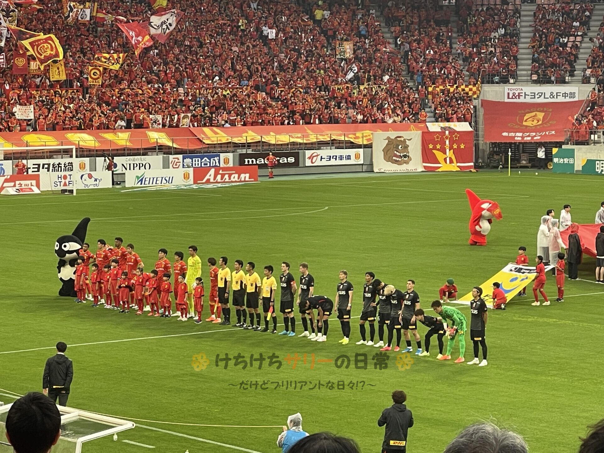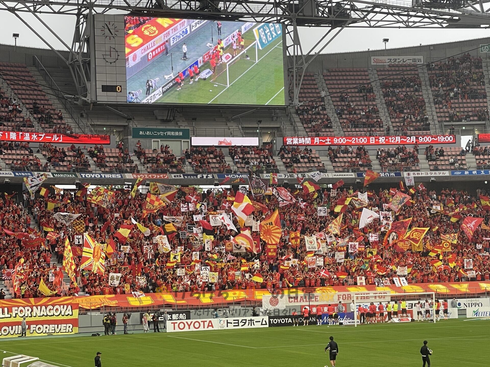 名古屋側も気合は十分! みんな旗を持って気合が入ってるよ🔥
