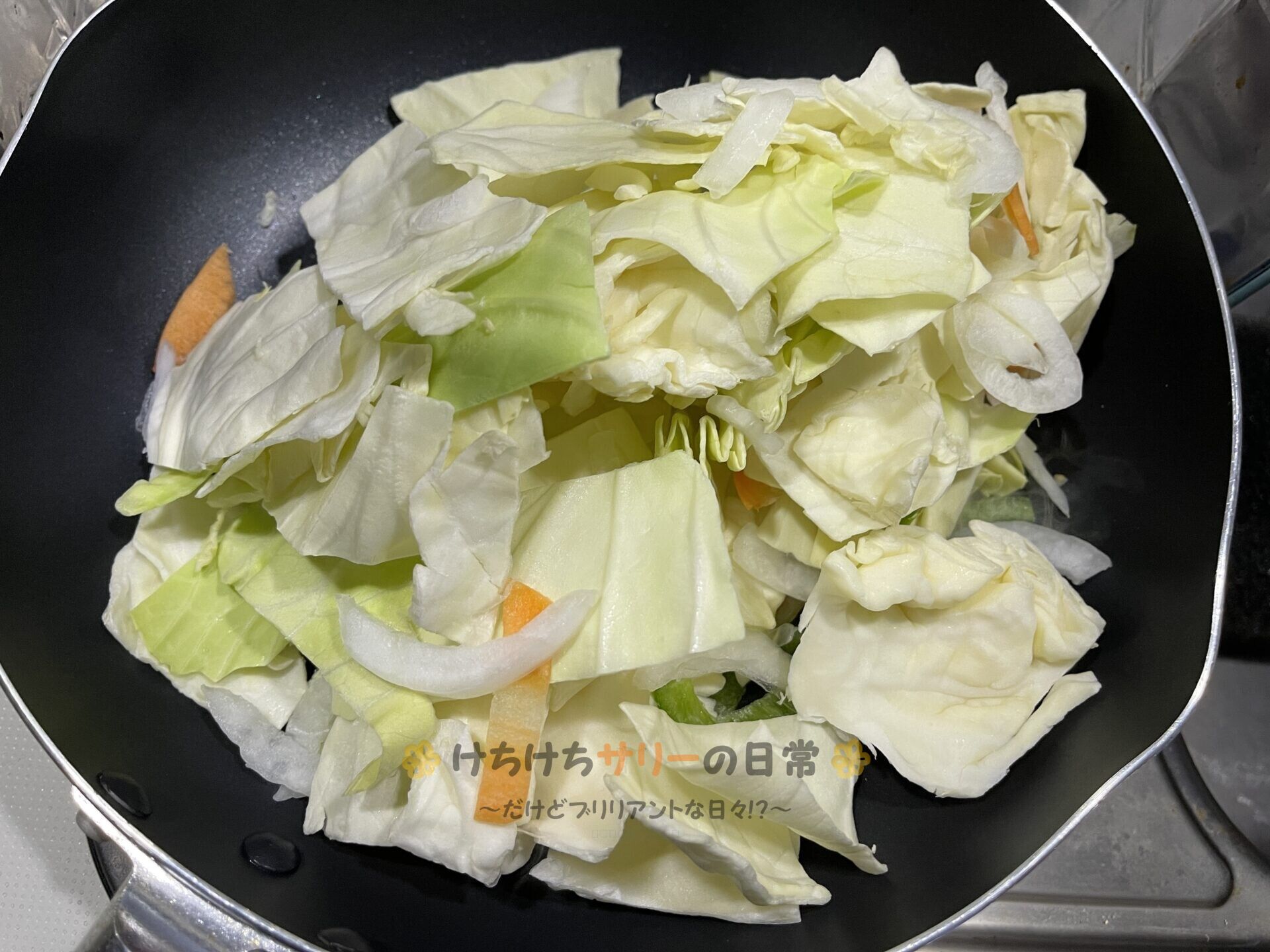 この日の夕ご飯は75%OFFの63円でゲットしたカット野菜を炒めて…