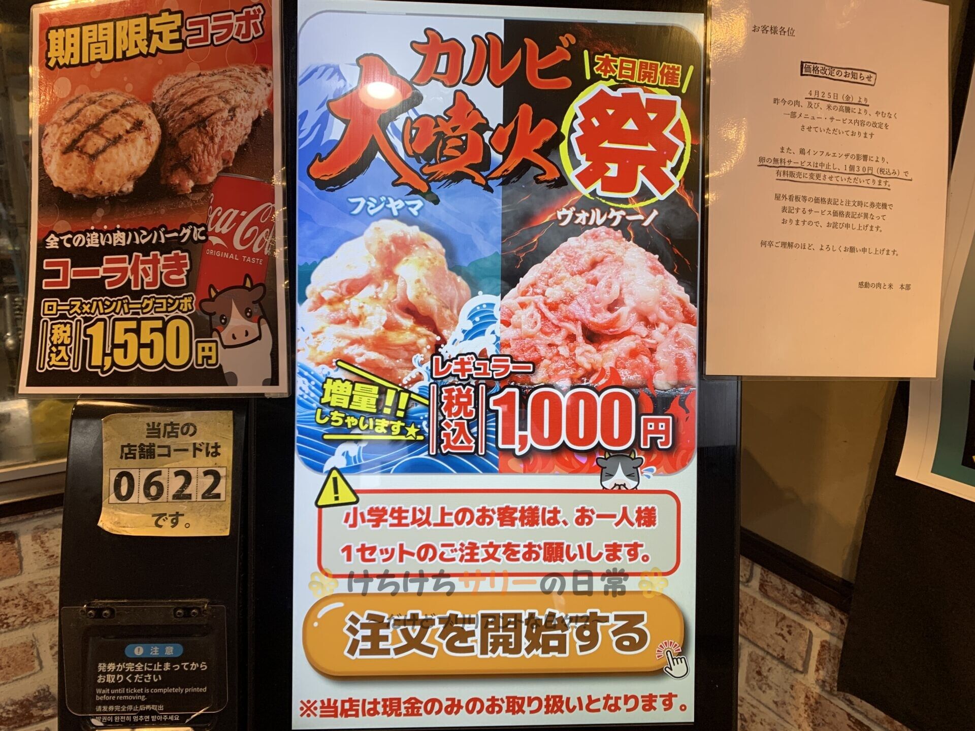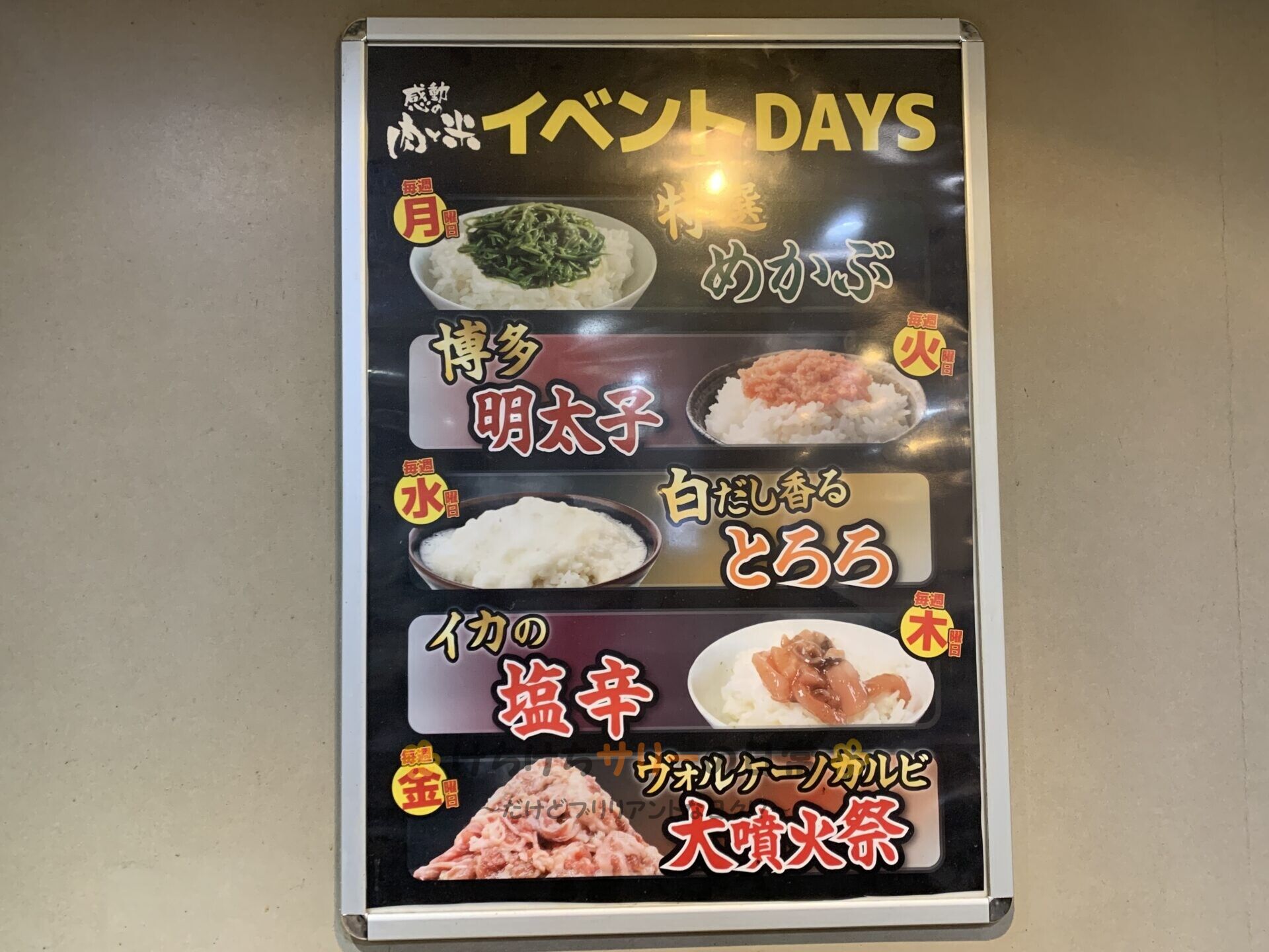 ここのお店は曜日によってやっているイベントが違うんだけど、この日は『ヴォルケーノカルビ大噴火祭』イベントなんだって!!