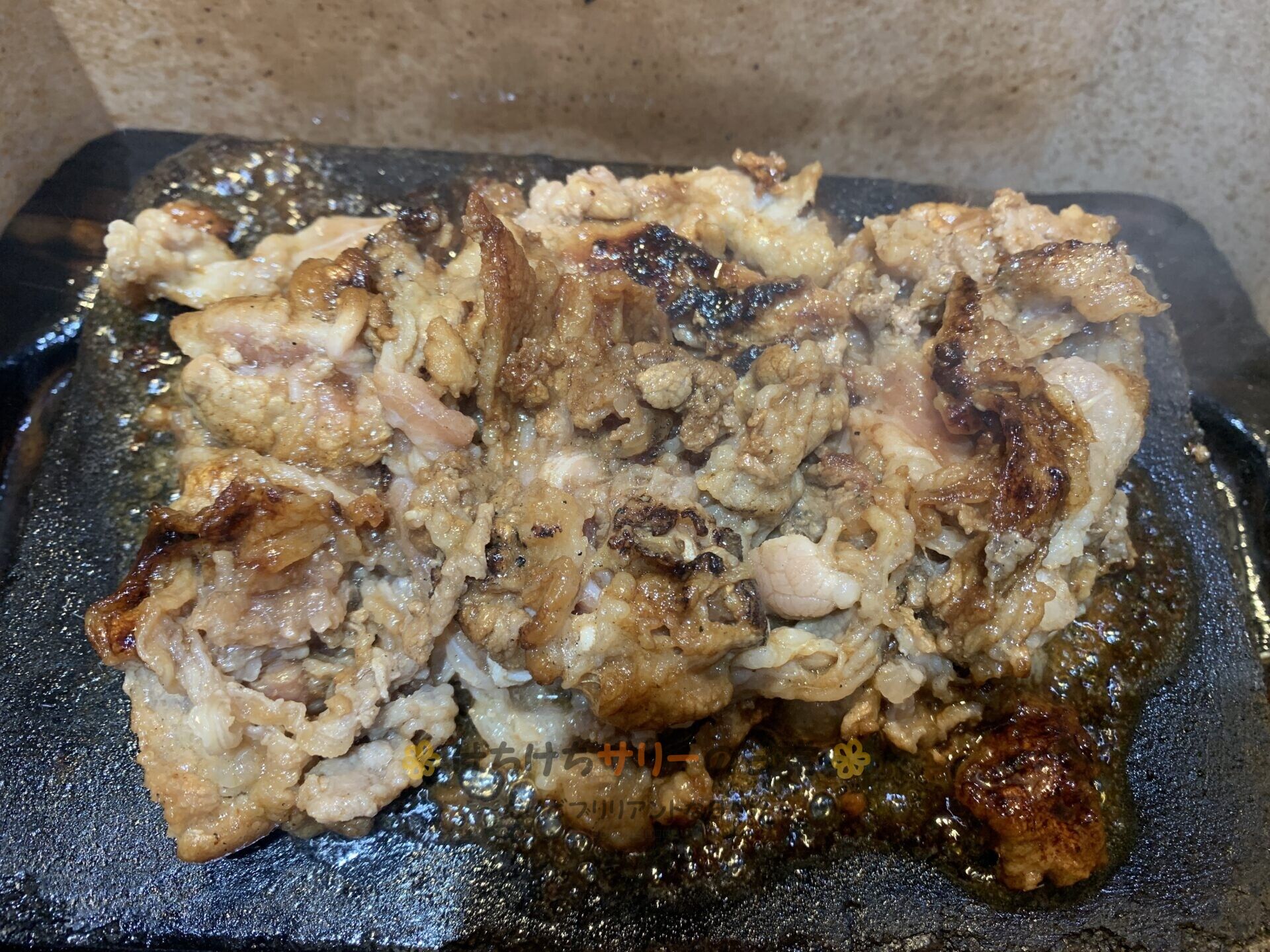カルビは熱々の鉄板でジュージュー焼いてから食べたよ😋