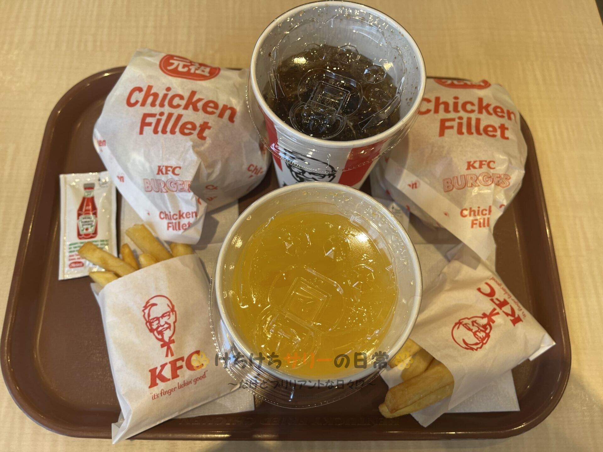 2人とも「ケンタランチ チキンフィレバーガーセット:通常価格から300円お得で550円」を注文。