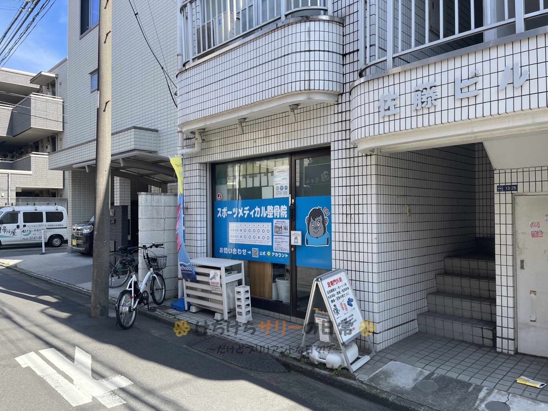 約束の時間になったので、待ち合わせをしていた「スポーツメディカル整骨院」に来た。 この辺りは車が停められないので、相方には広い道路で待機してもらったよ。