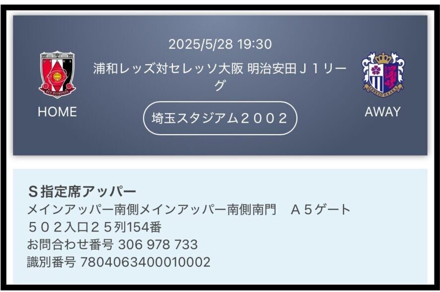 この日の席種は『S指定席アッパー』。 本当は1枚5,100円するんだけど、前回の名古屋戦と同じく会社の方に招待券をもらったので無料🆓