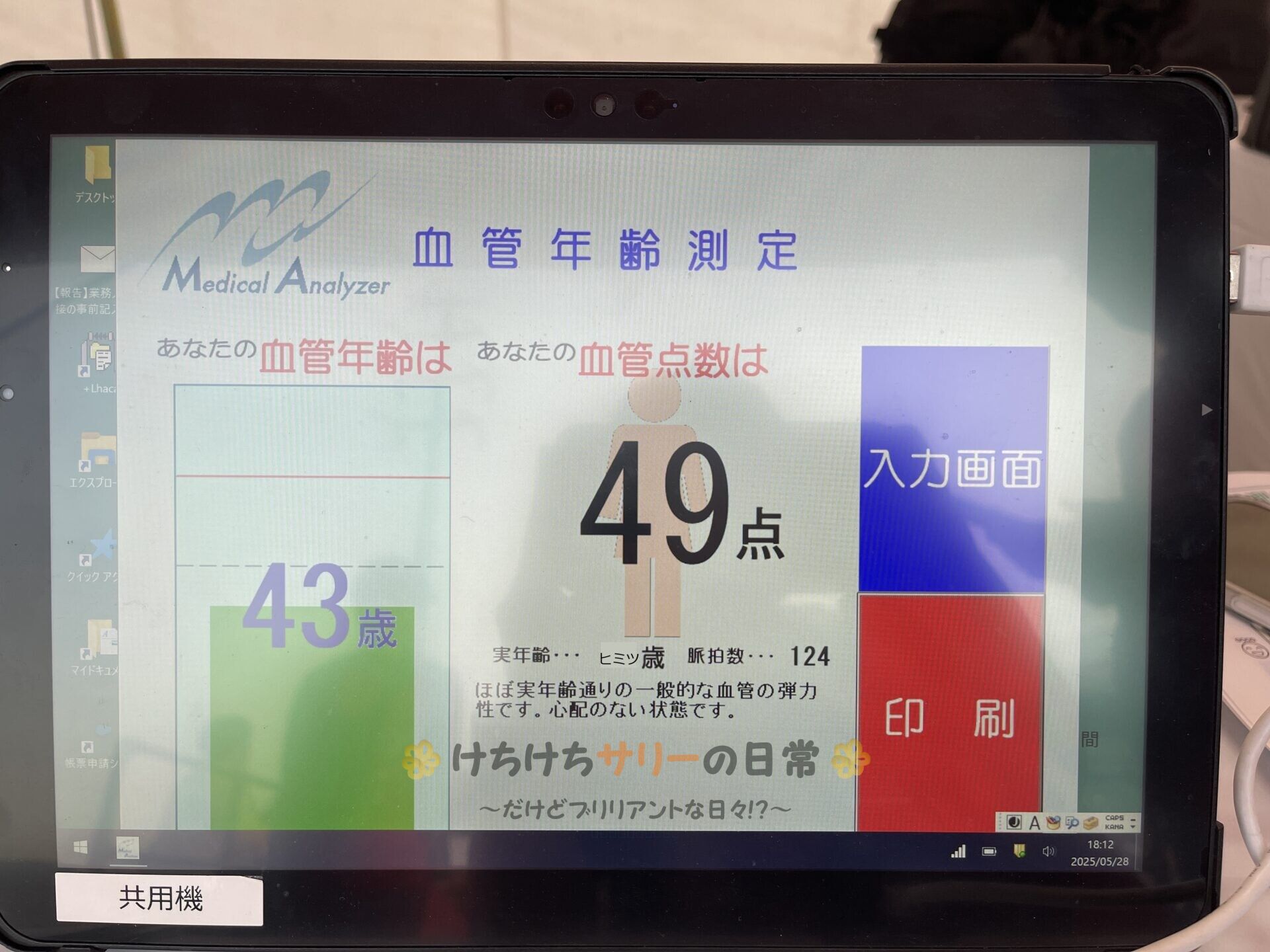 サリーの血管年齢は43歳。 実年齢は秘密だけど43歳より若いとだけ伝えておこう(笑)