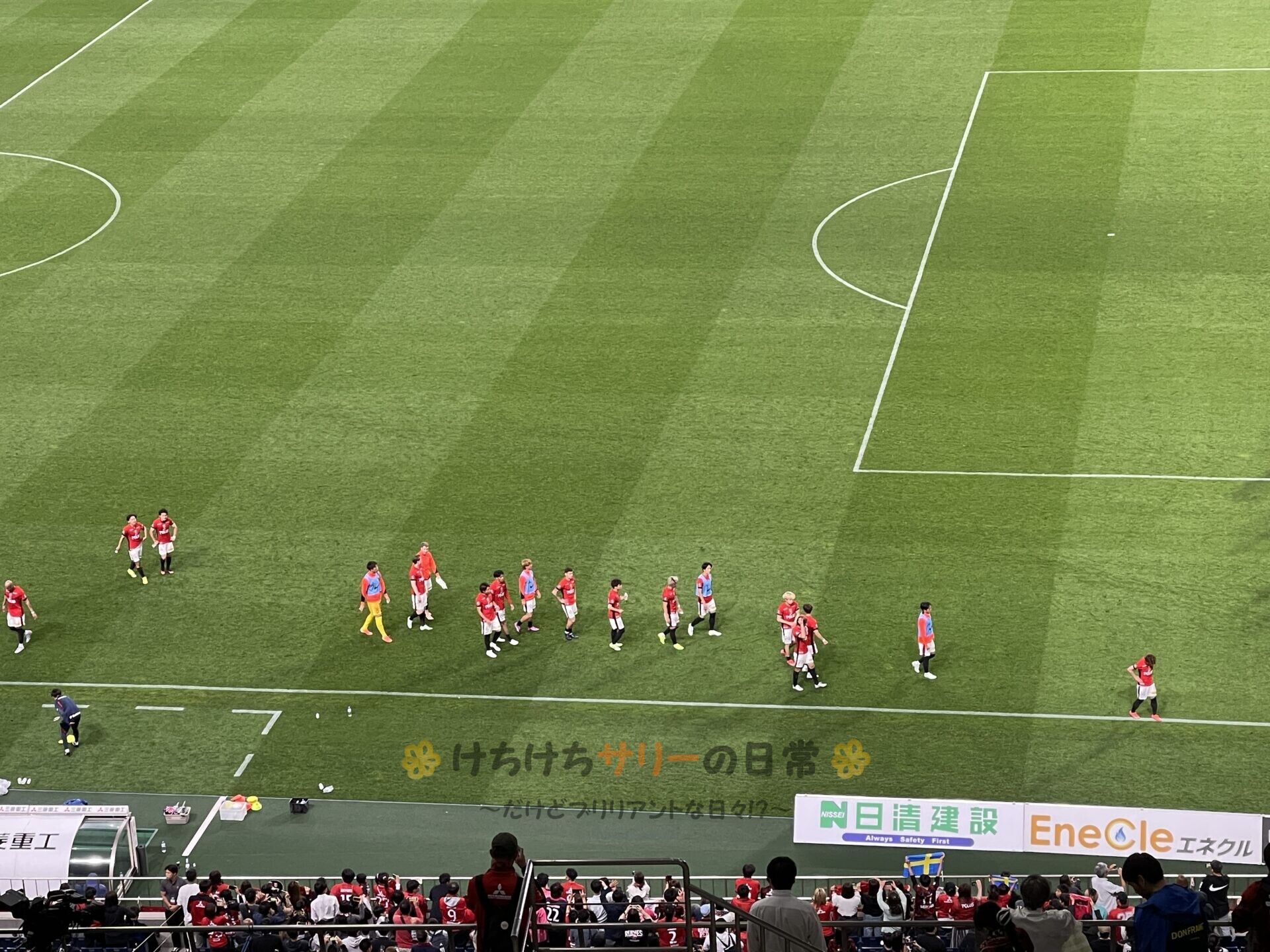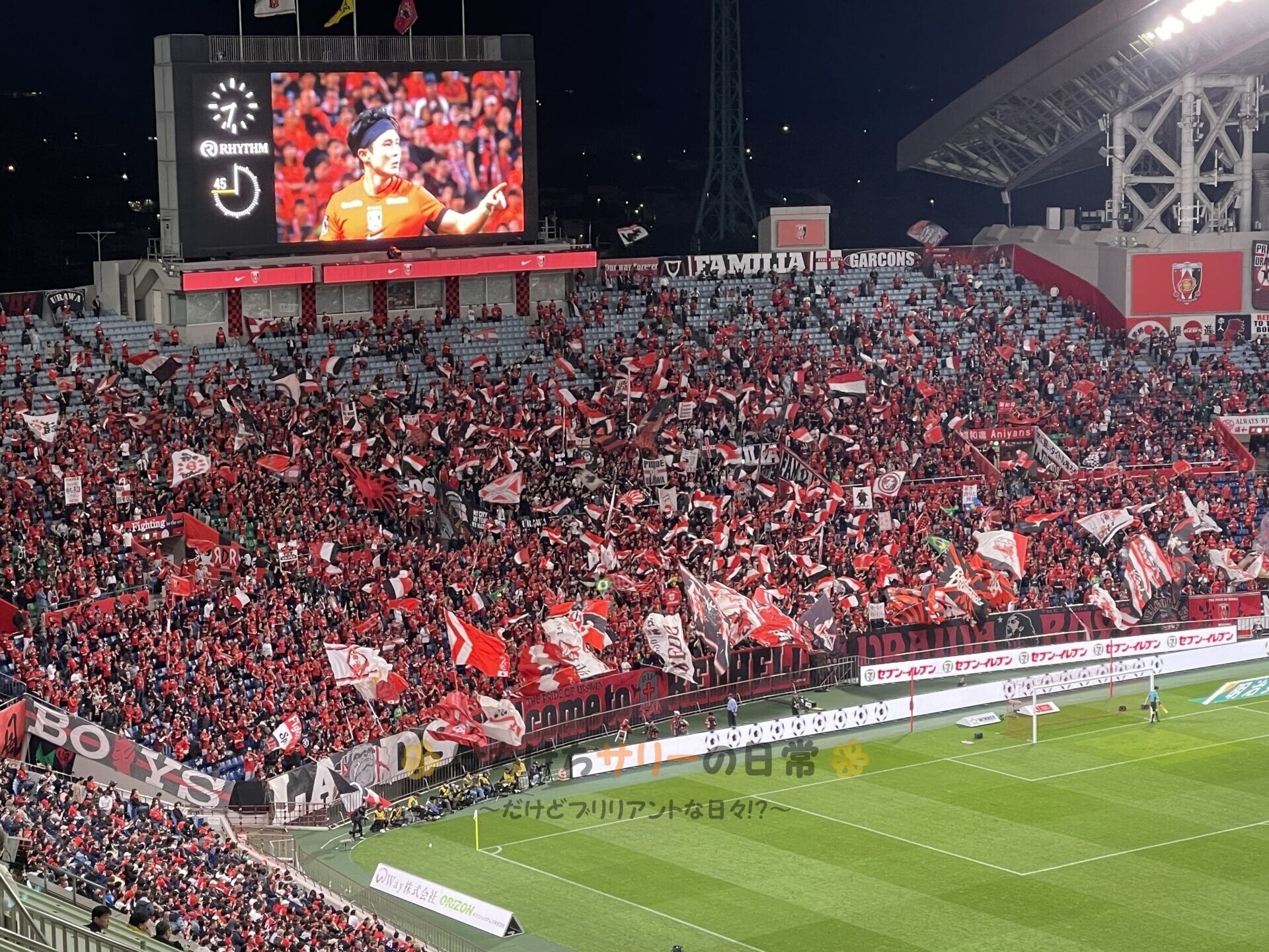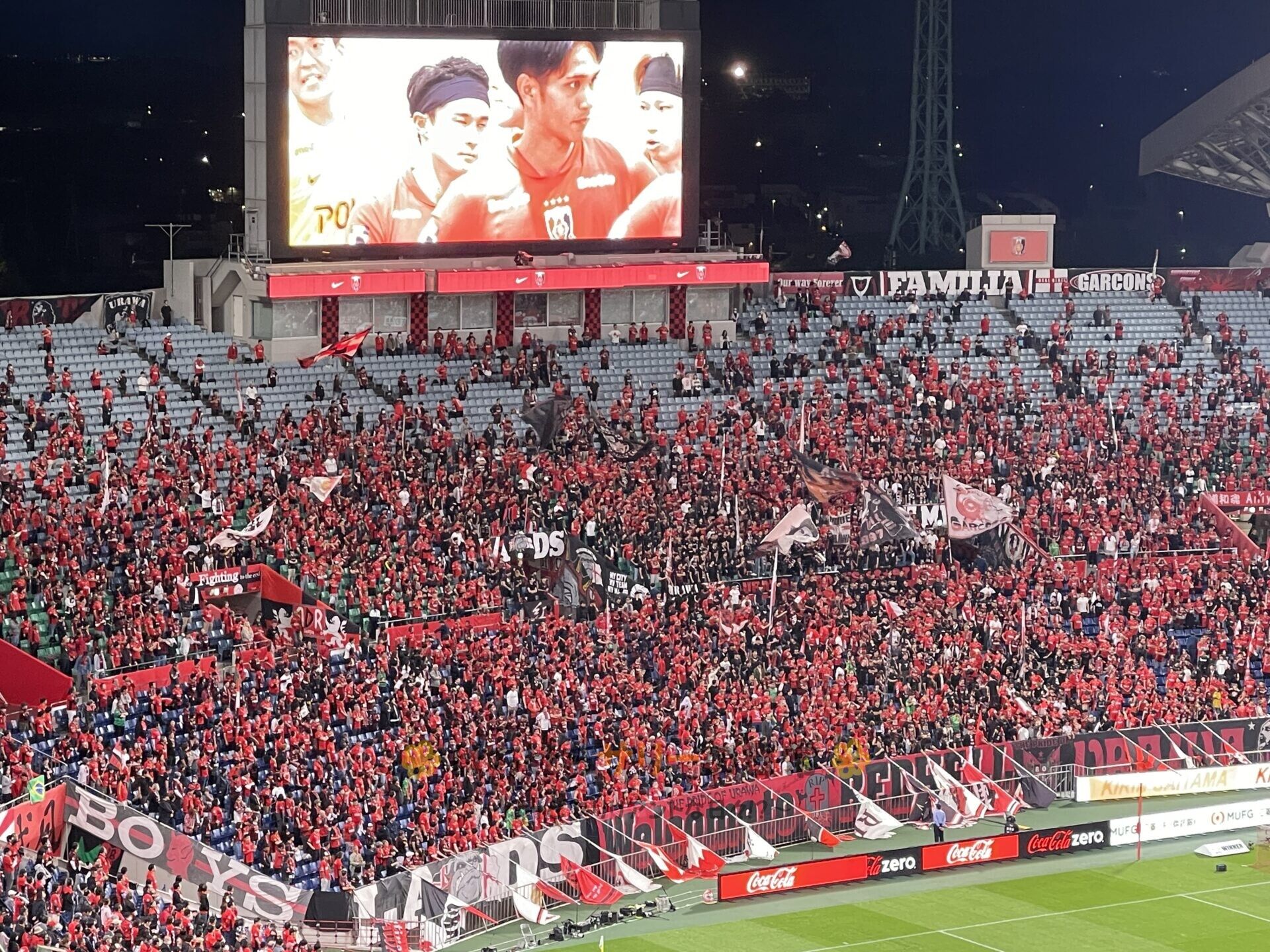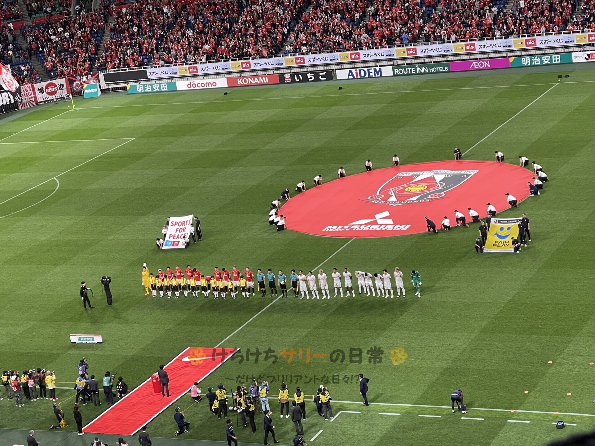 試合前の入場の様子を動画で撮影したよ! 浦和の応援歌しか聞こえないぐらい応援に気合が入ってるのが分かるかな!?