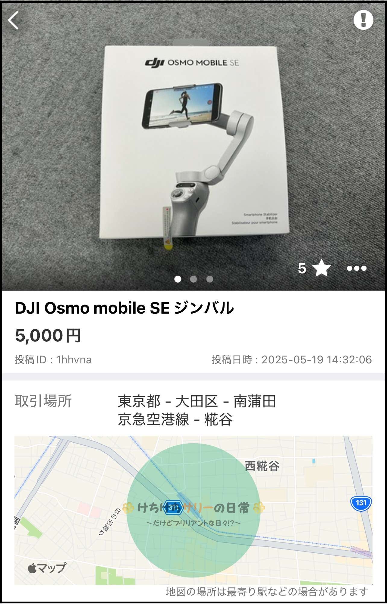 来た目的はジモティーで見つけた『dji製のジンバル:5,000円』を譲ってもらうため!