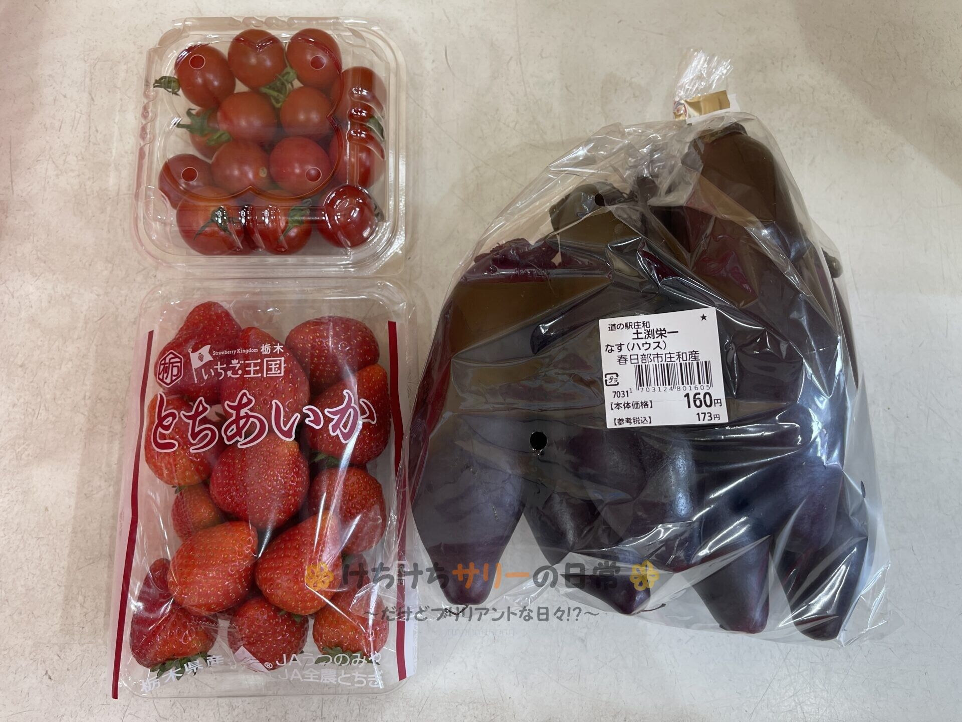 道の駅「庄和」は農産物が安いので、ナスにトマト、イチゴを購入👍