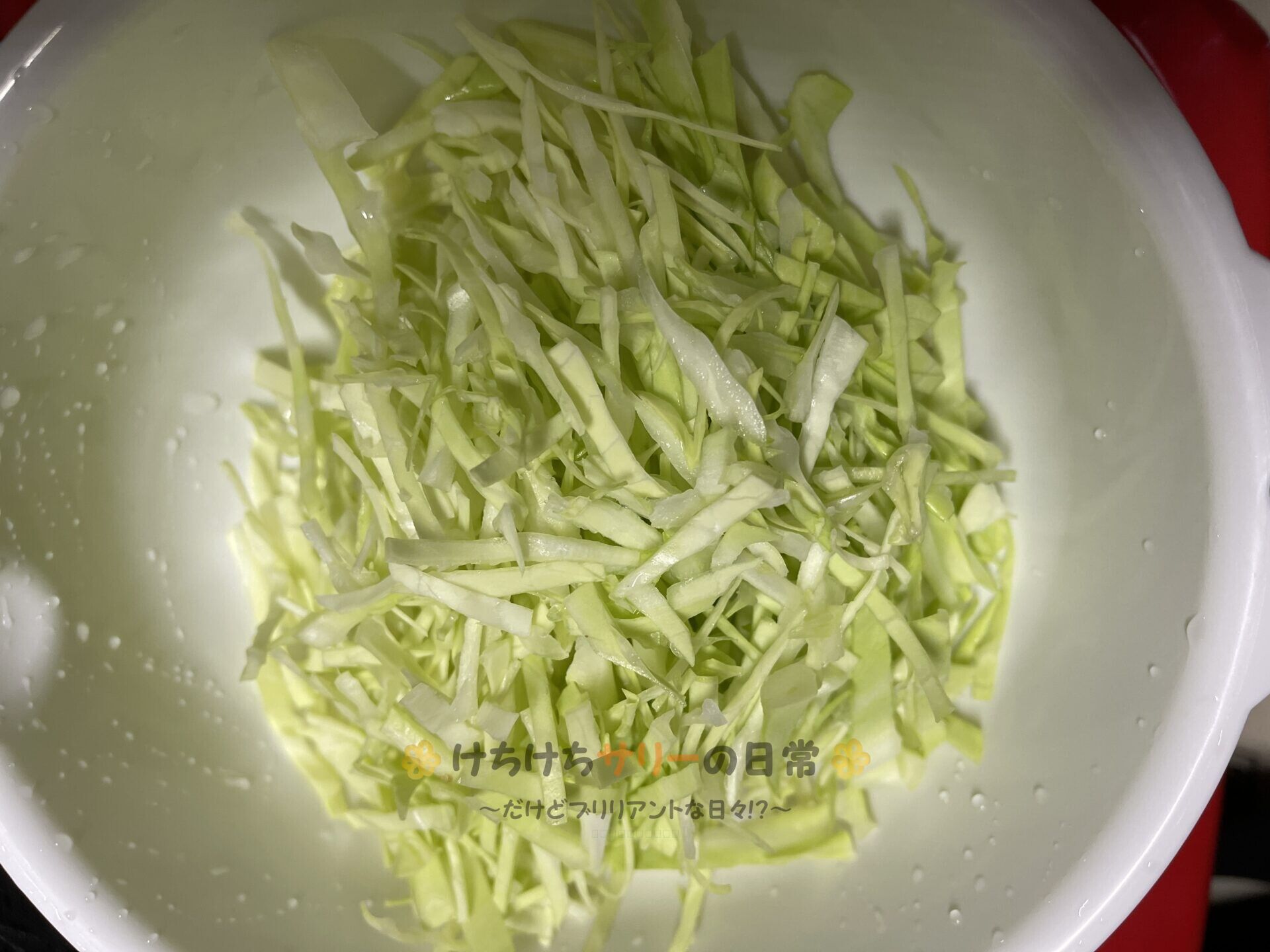 切る作業はなるべく一気に終わらせた方が良いから、明日のおかず用のキャベツは千切りにする。