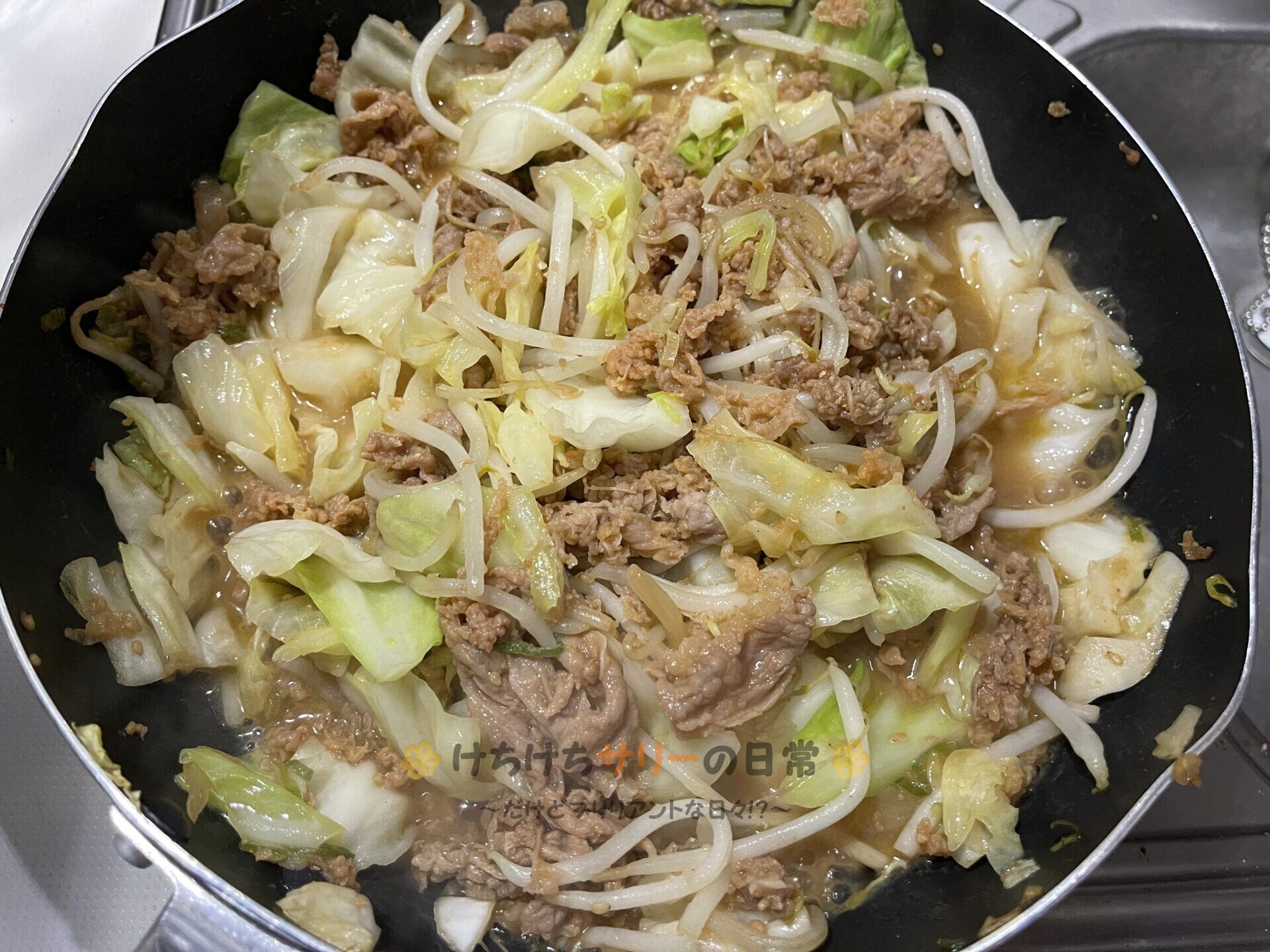 今日食べる分はざく切りにしてから、ロピアで買ったプルコギ肉を炒めて…