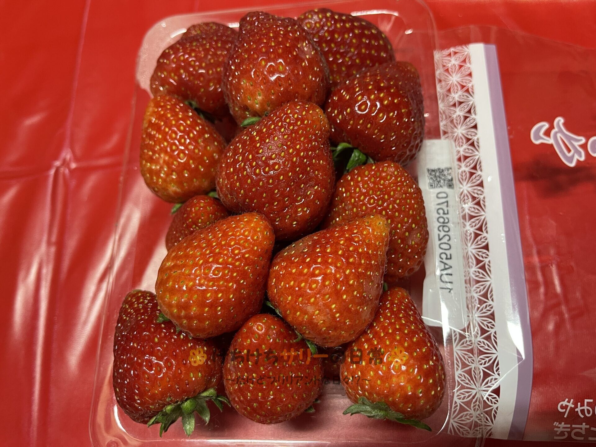 コールスローが完成したら冷蔵庫に大事にしまって、代わりに冷蔵庫から大事にイチゴを取り出す🍓
