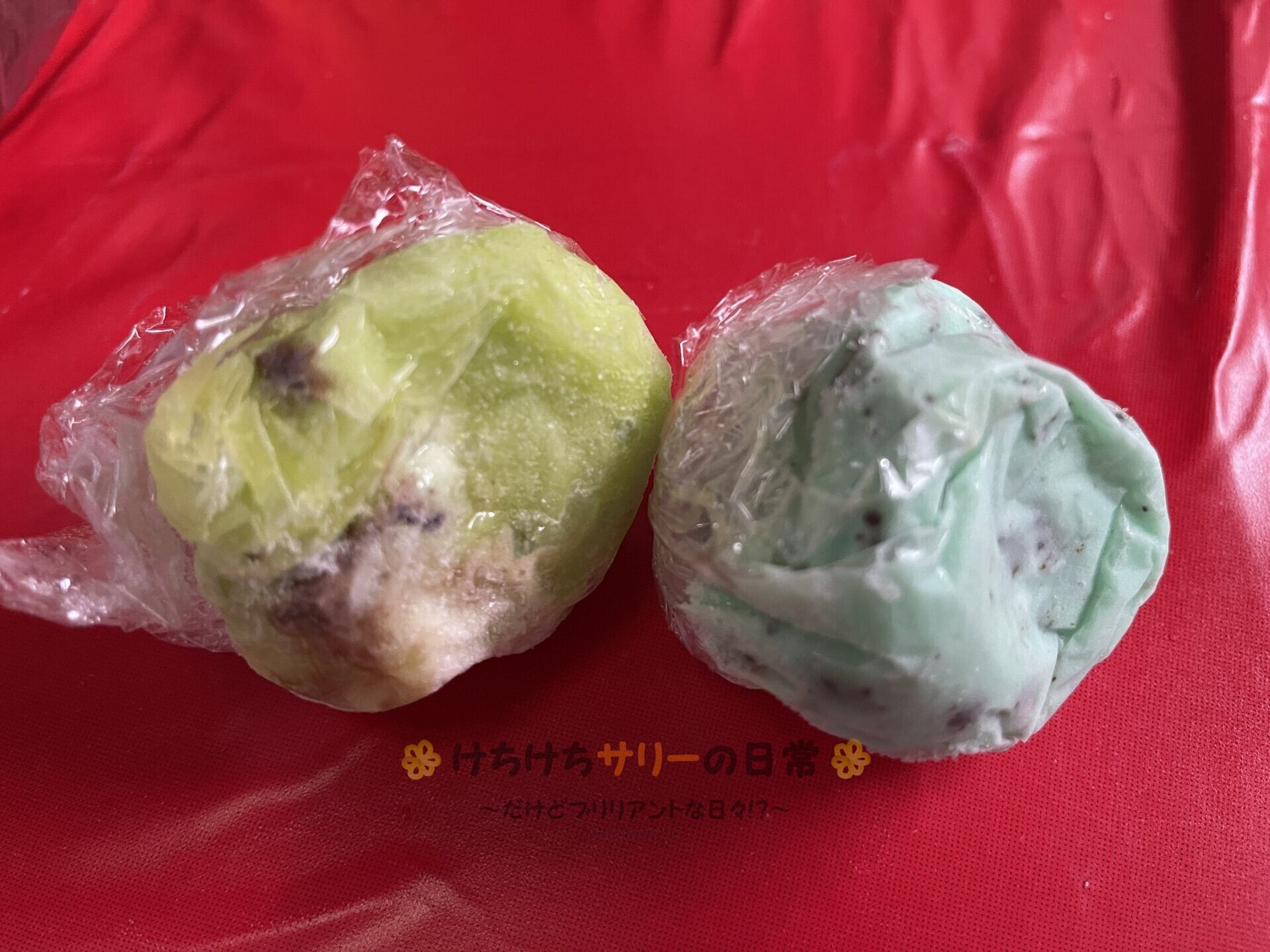 サリーは写真右の「チョコレートミント」、相方は写真左の「キウイ杏仁豆腐」にした😁